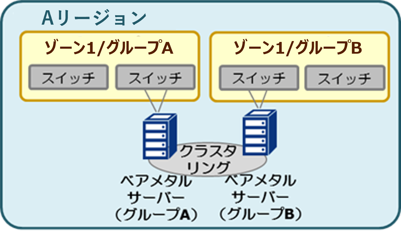 ベアメタルサーバーメニュー、サーバーインスタンスメニュー、ストレージカテゴリではゾーン/グループの考え方に違いがあるため、本項にて補足をいたします。
