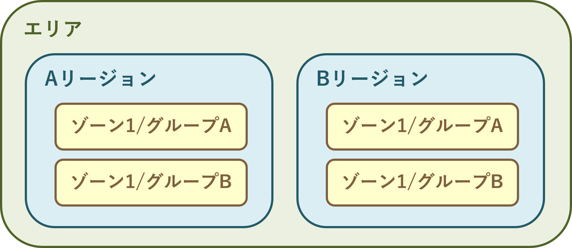 エリア、リージョン、ゾーン/グループの概念図¶