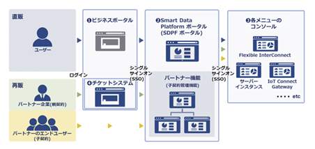 お客さまはビジネスポータルにログインすることで、Smart Data Platformポータル(以下SDPFポータル)にシングルサインオンできます。