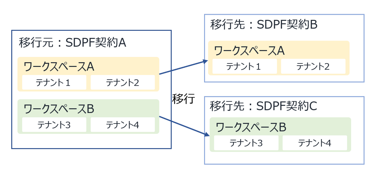 既存ワークスペース内のテナントを別のワークスペースに配置することはできません。