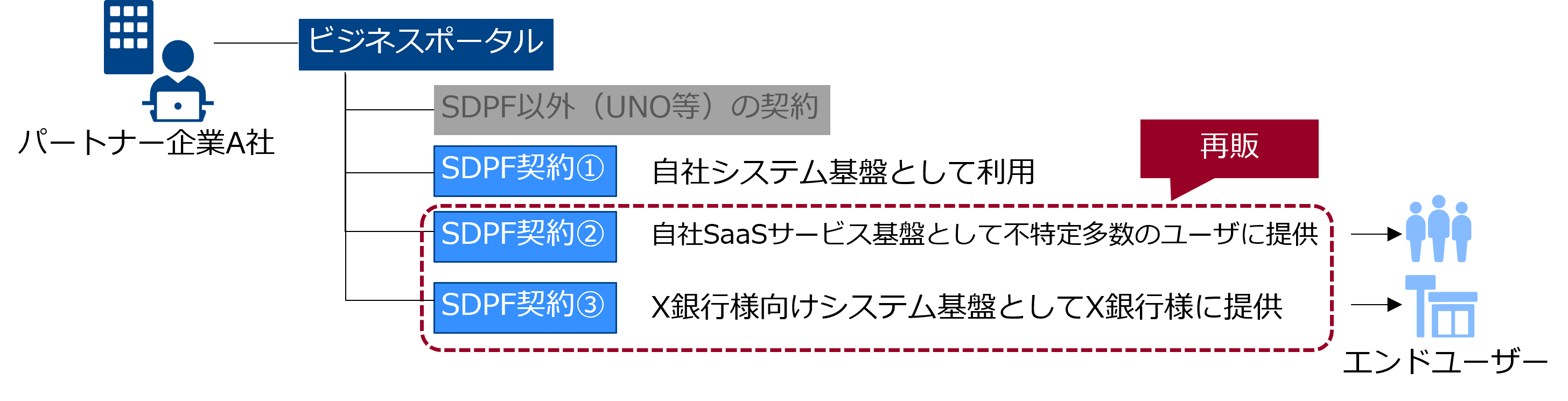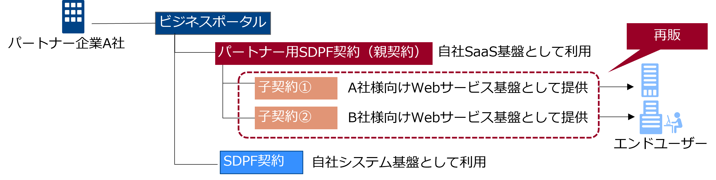 また、パートナーのエンドユーザーのお客さまがご利用できる 「SDPFポータル(子契約向け)」 をご提供します。