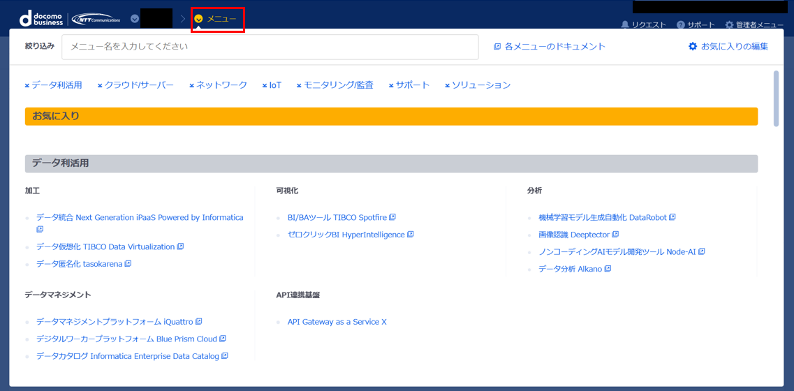 Smart Data Platformへのログインは NTTドコモビジネスポータル からログインしてください。
