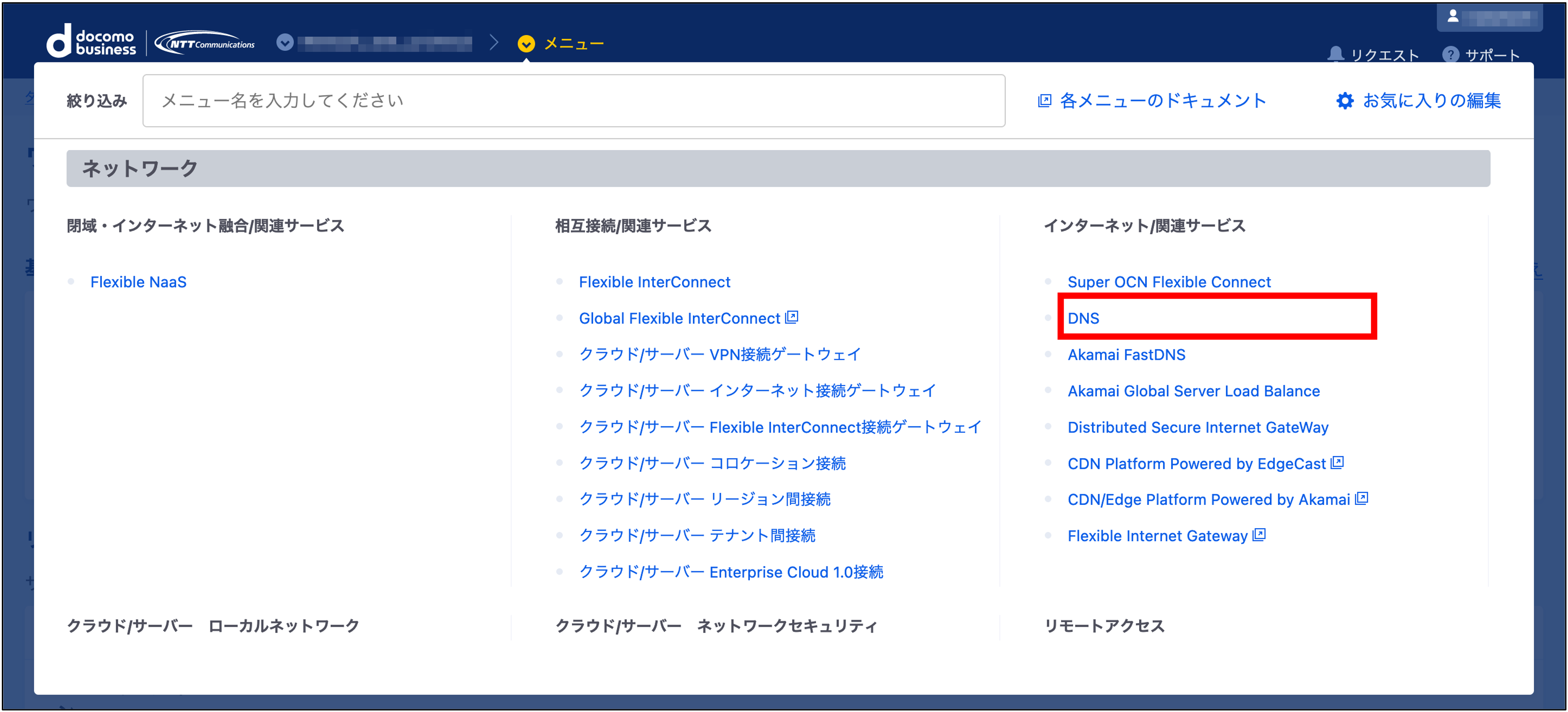 Smart Data Platformポータルのメガプルダウンメニューから「DNS」を選択します。