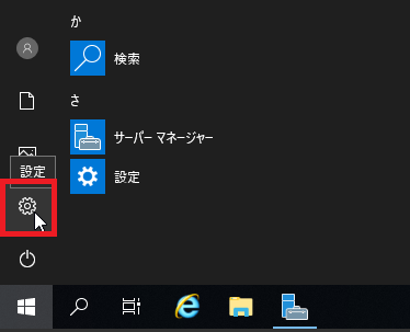 デスクトップ左下にある「Windows」をクリックし、歯車のアイコンを選択します。