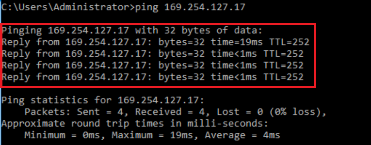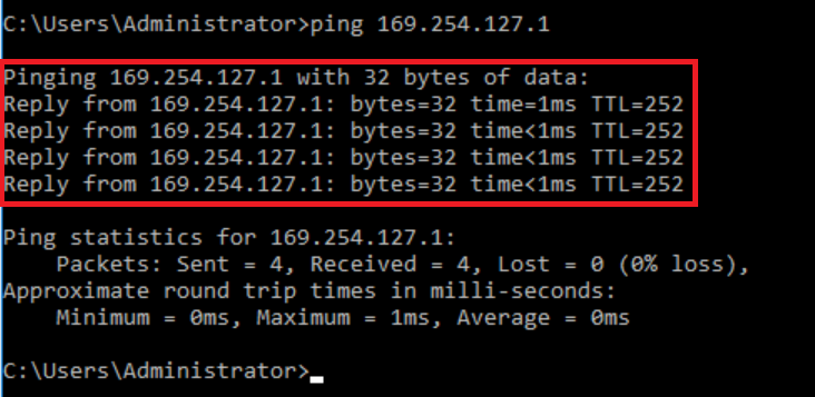 上図に表示されているライセンス認証サーバーのアドレスに対して、インスタンスから下記のようなpingを実行し疎通が出来ていることを確認します。