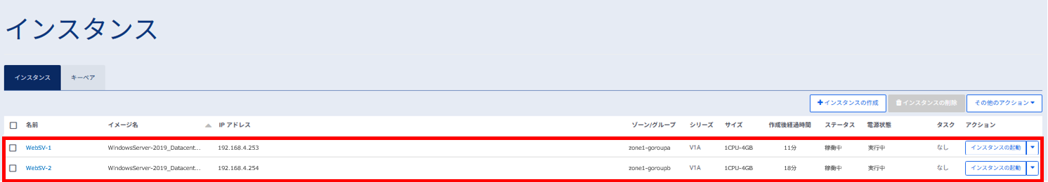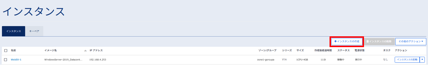 インスタンスの作成が完了すると、一覧画面に作成されたインスタンスがリストに追加されて表示されます。