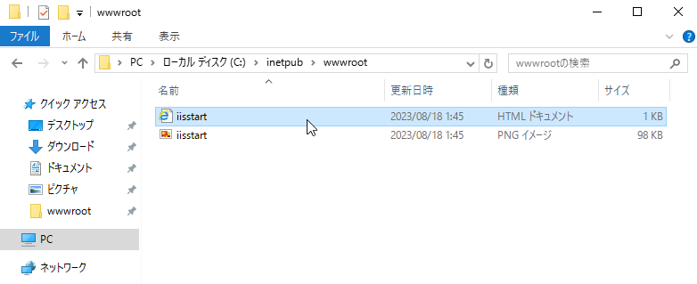 「IIsstart」を右クリックし、「プログラムから開く」→メモ帳を選択します。