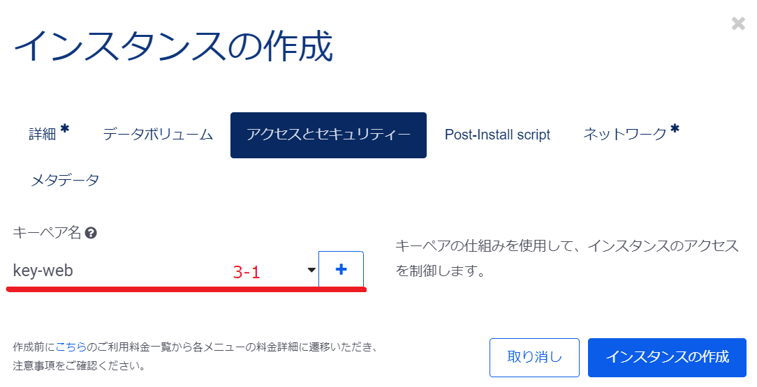 2.3. インスタンスの作成 - アクセスとセキュリティ¶