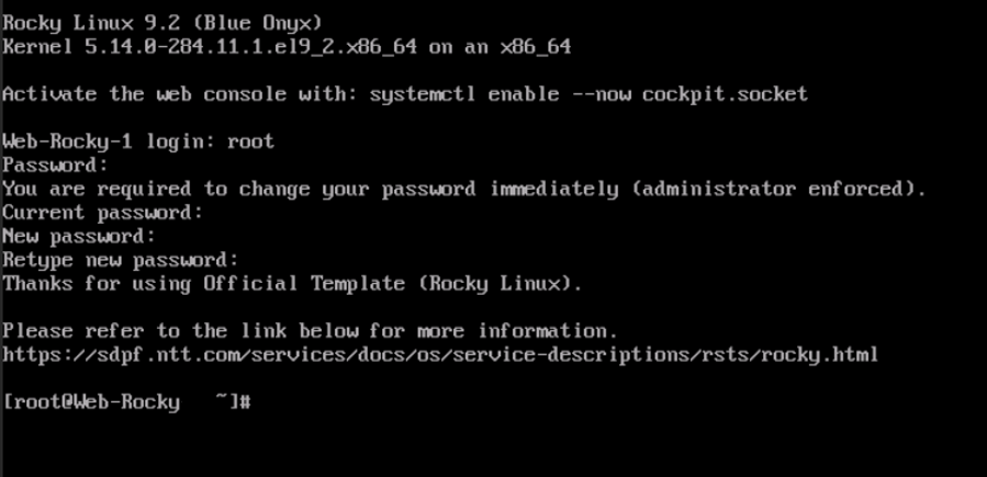コンソール画面にてログインし、初期パスワードを変更します。