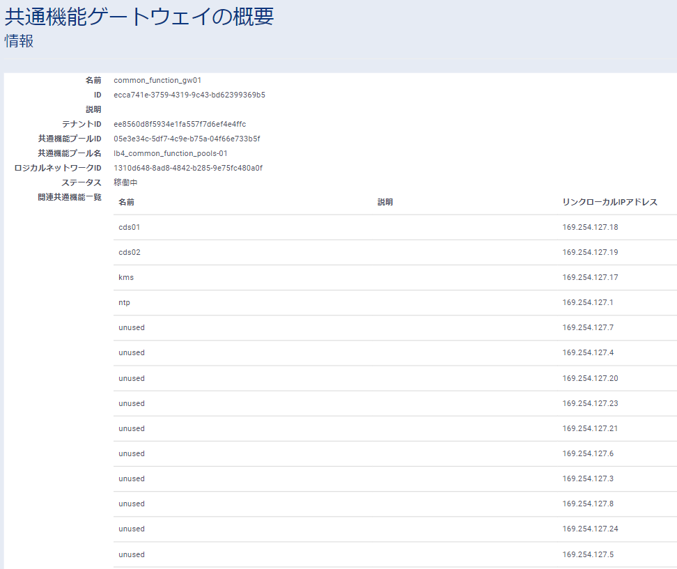 ネットワークインターフェイスの接続が完了したら、NTPサーバーへの疎通確認を実行します。NTPサーバーのアドレスは、共通機能ゲートウェイの詳細から確認できます。