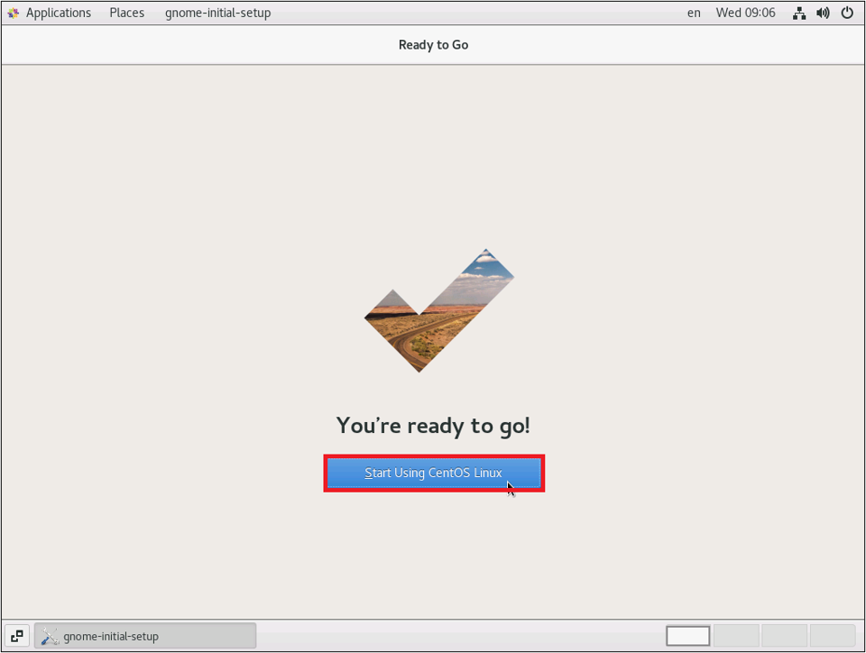 設定が完了しました。「Start using CentOS Linux」をクリックしてください。