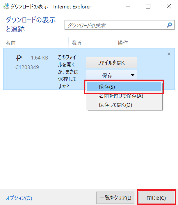 下記画面にて、「保存」を選択し「閉じる」をクリックします。
