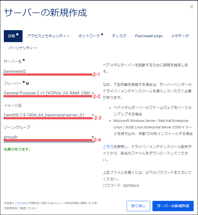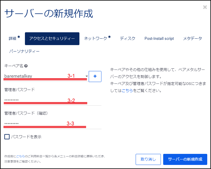 2.1. ベアメタルサーバーの作成 - 詳細タブ¶