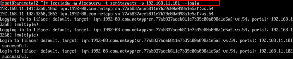 iscsiadm -m discovery -t sendtargets -p 192.168.11.101 --login