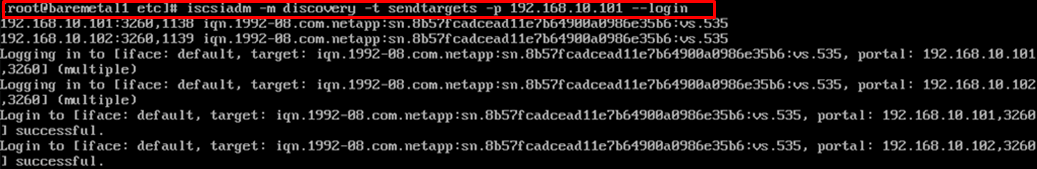 iscsiadm -m discovery -t sendtargets -p 192.168.10.101 --login
