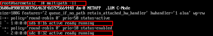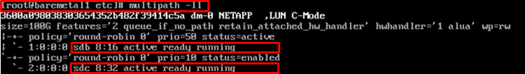vendor "NETAPP" product "LUN" path_grouping_policy group_by_prio features "1 queue_if_no_path" prio "alua" path_checker directio failback immediate path_selector "round-robin 0" hardware_handler "1 alua" rr_weight uniform rr_min_io 128 uid_attribute ID_SERIAL