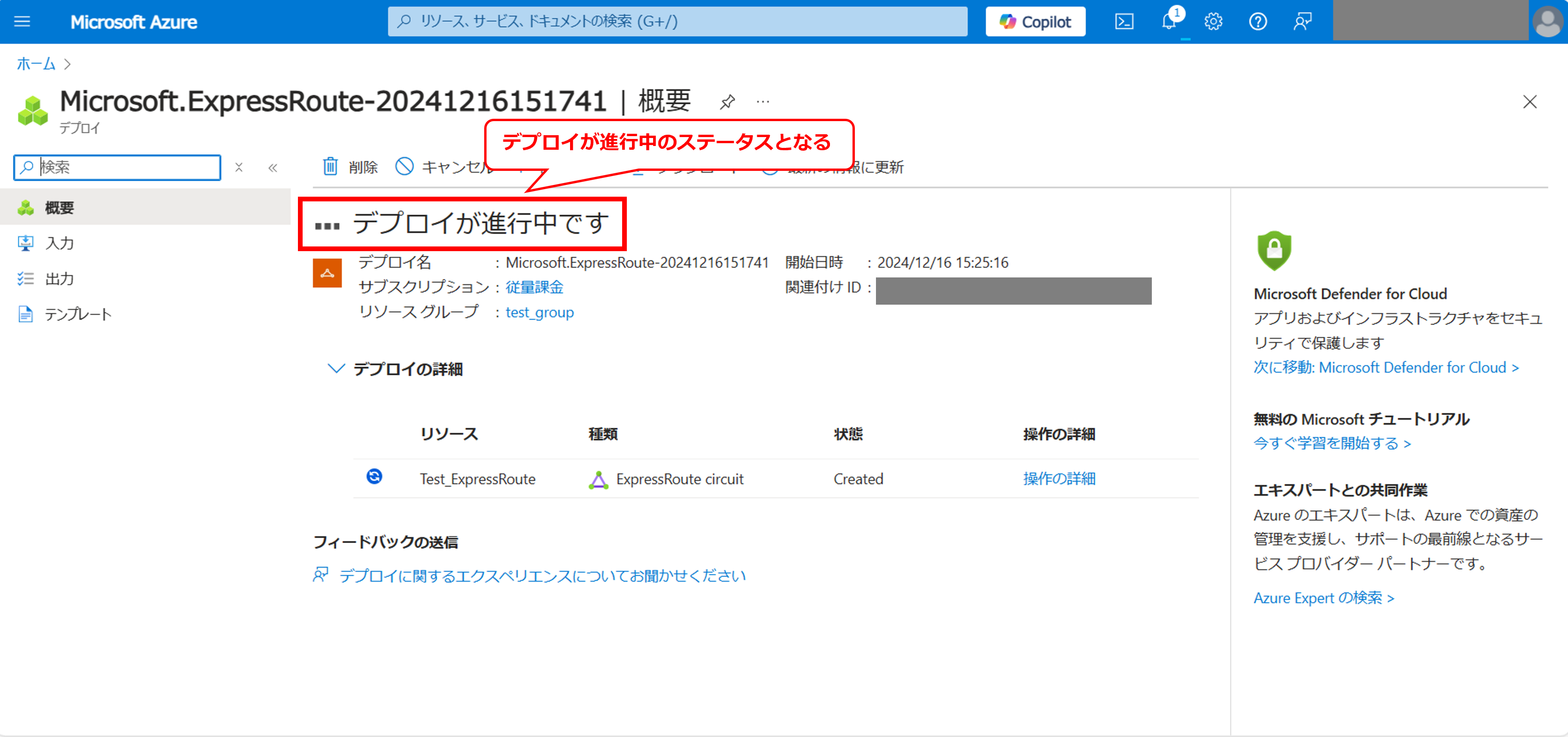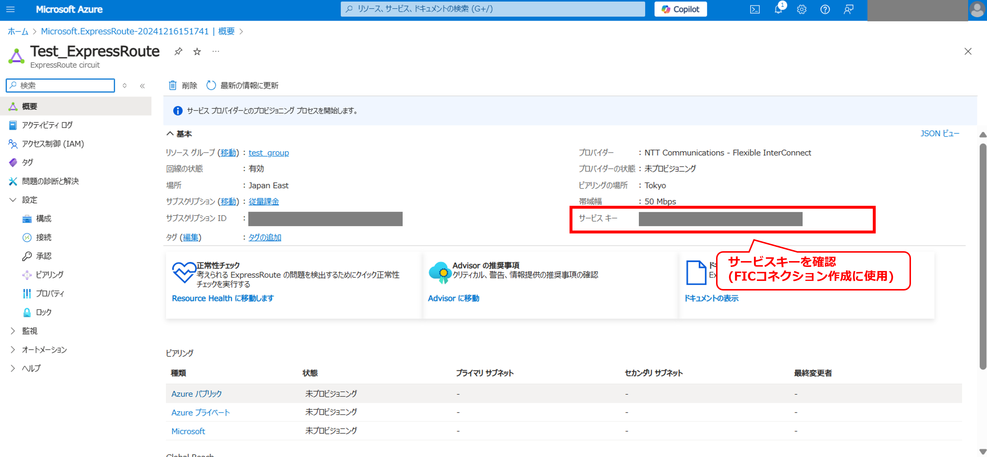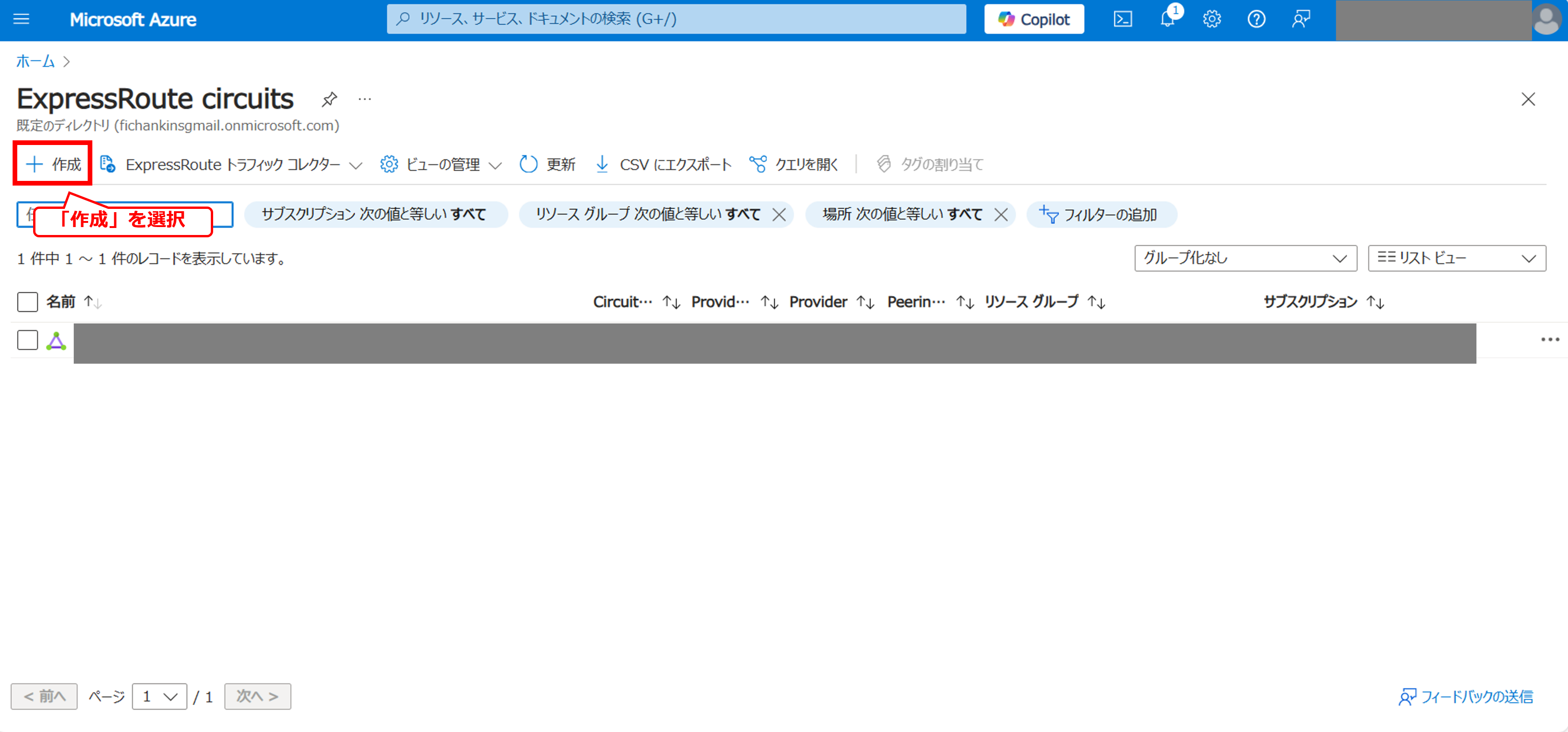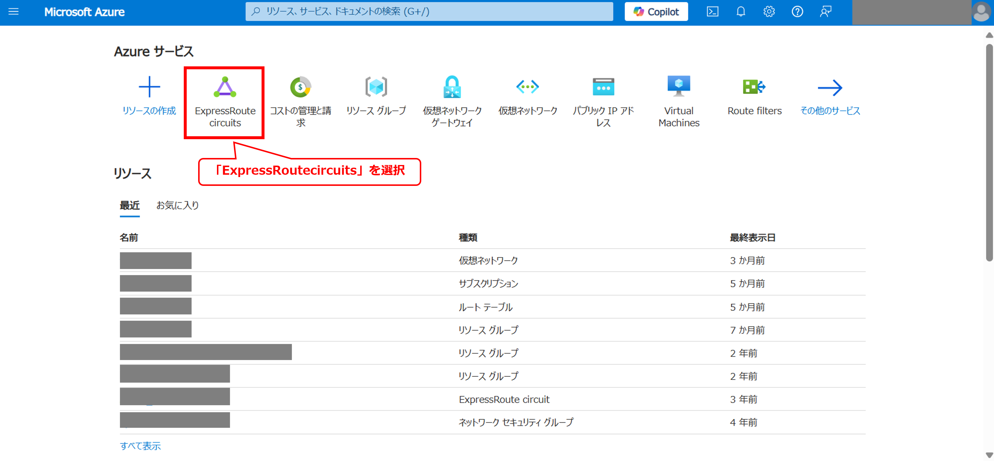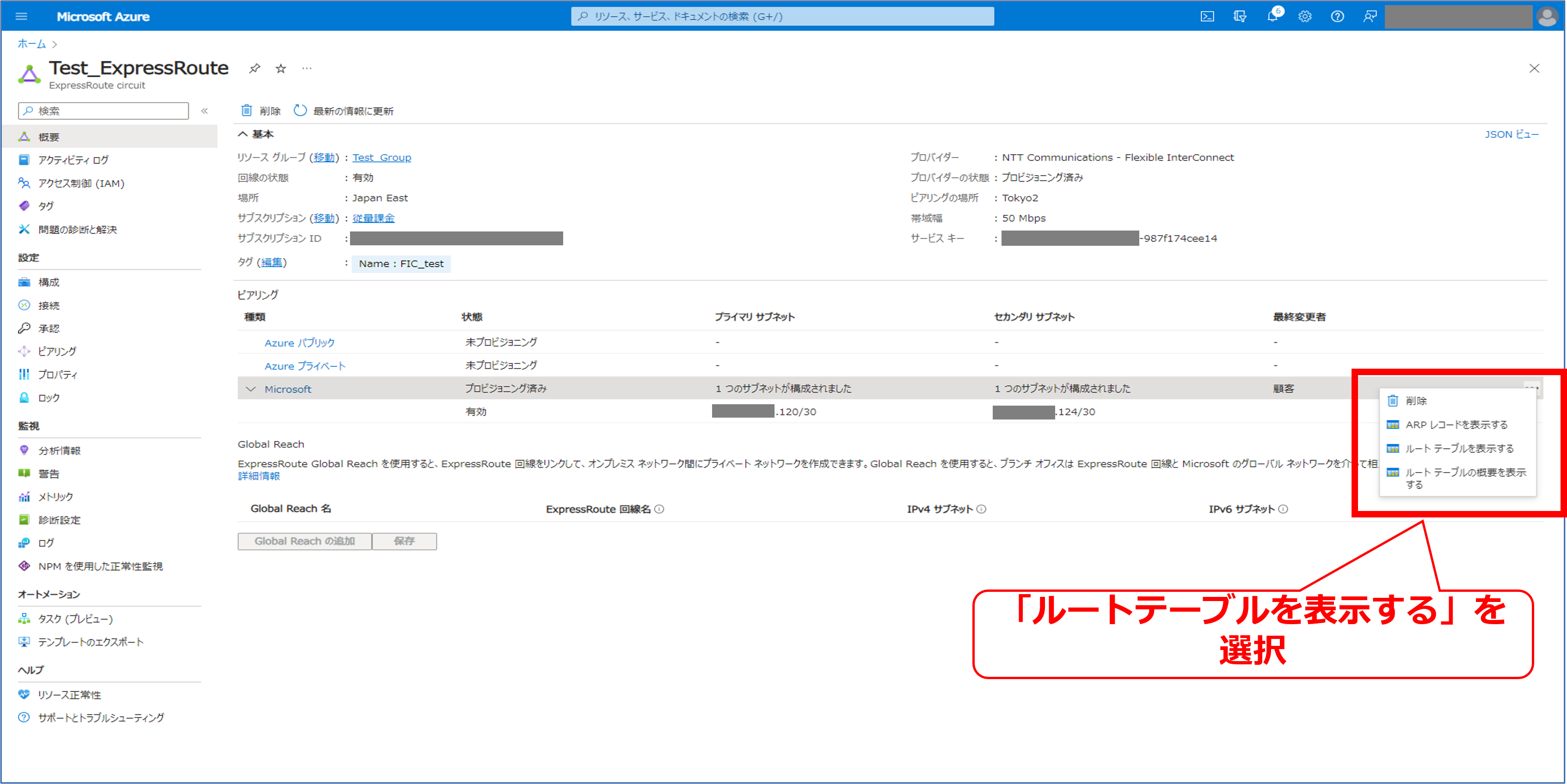 9.8.2 ExpressRoute Circuits選択後の画面(Azure)