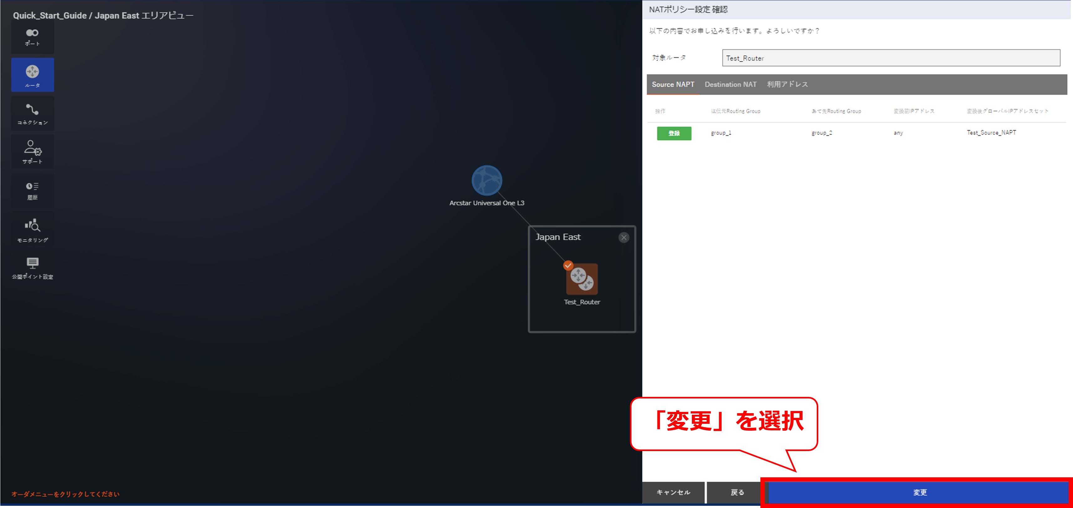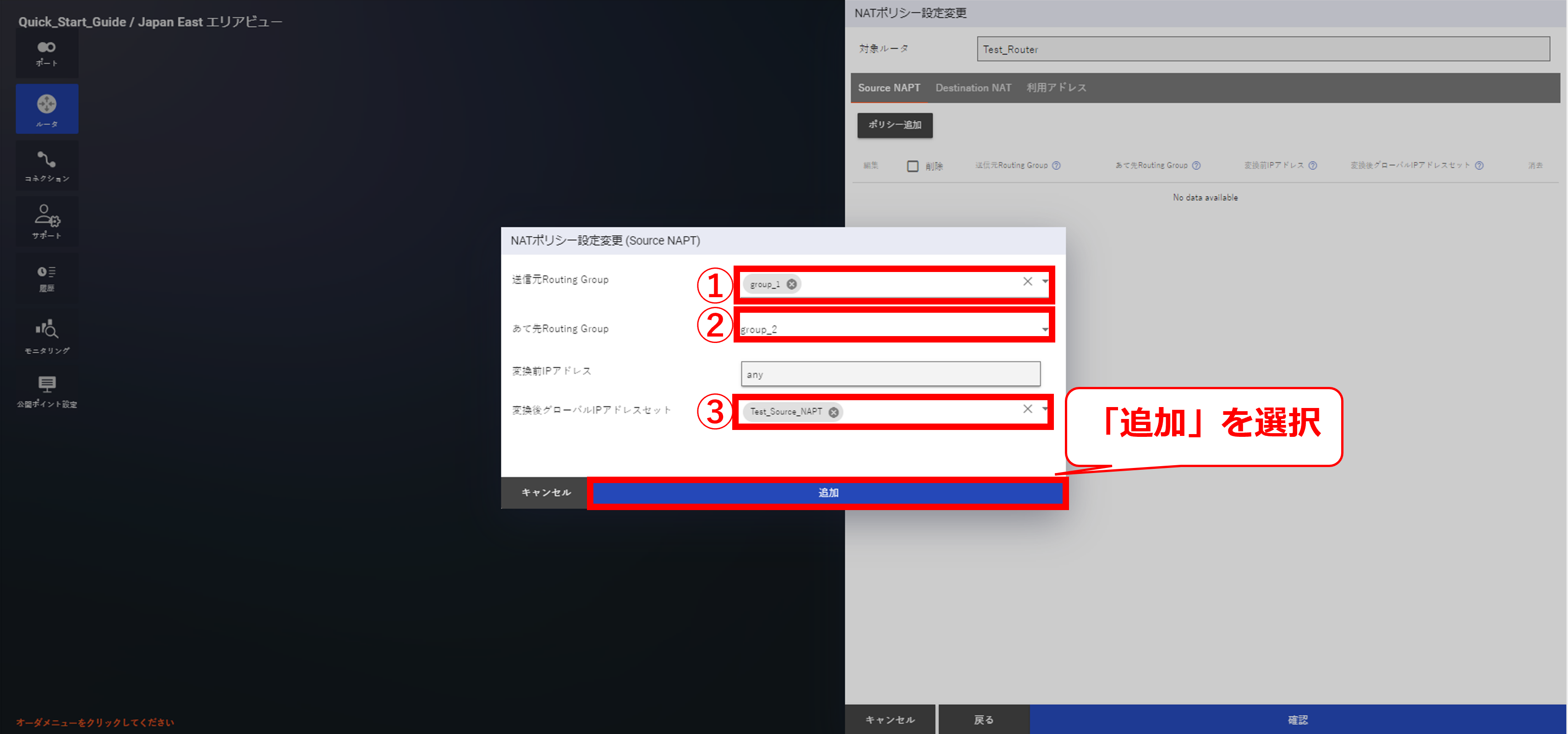FIC-Consoleで購入済みのルータのアドオン設定にてSource NAPTの購入及び設定