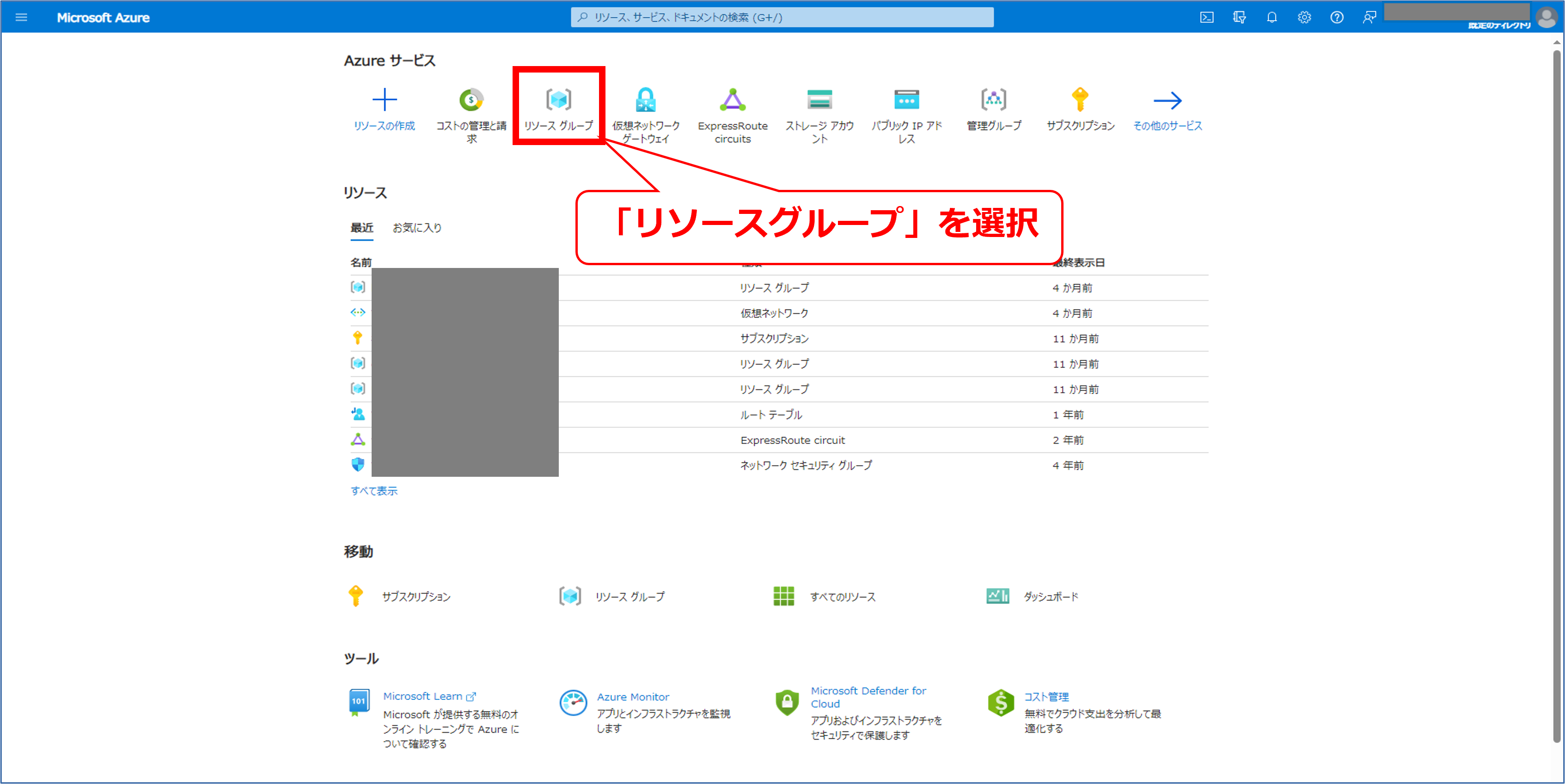 9.10.1【参考】Azureログイン後の画面(Azure)