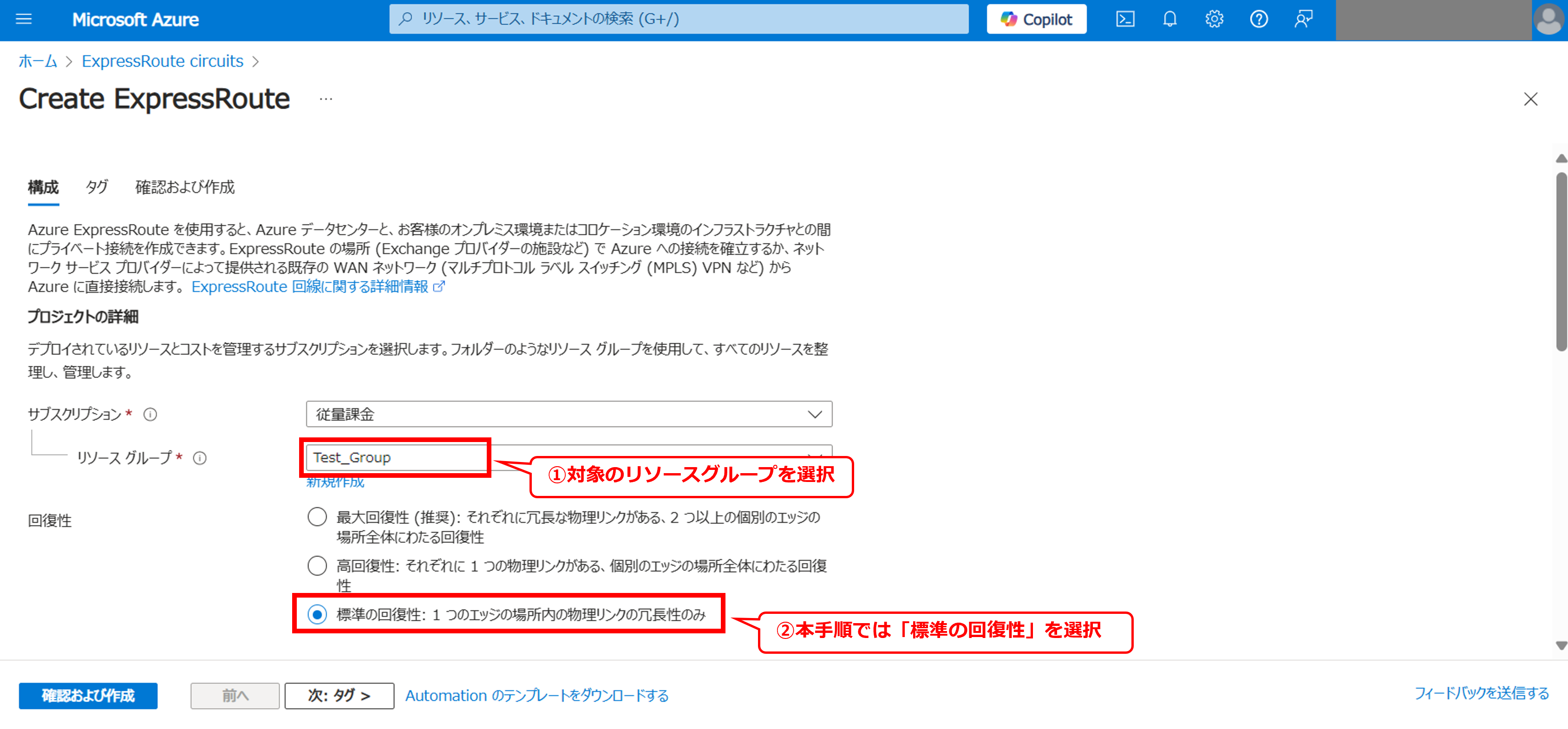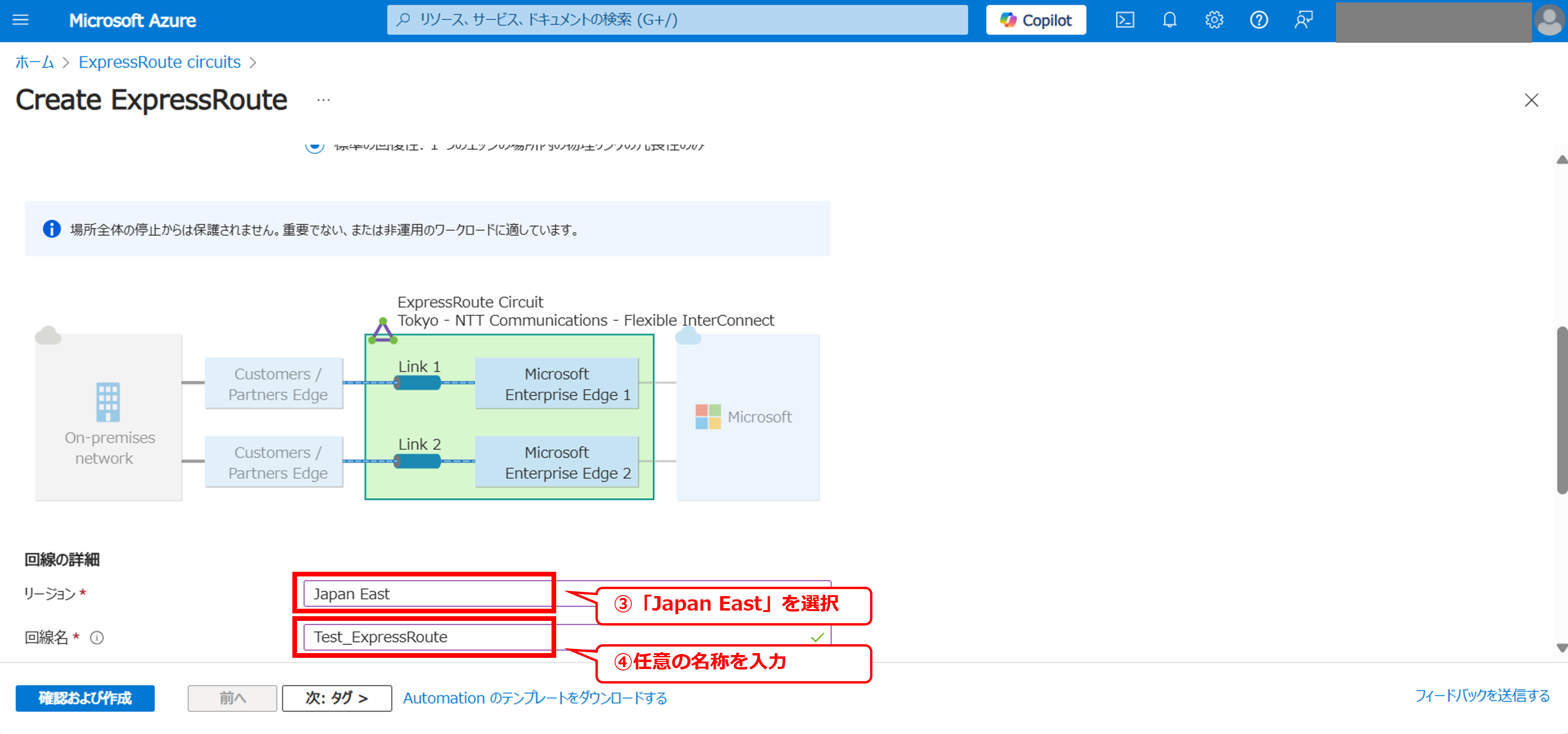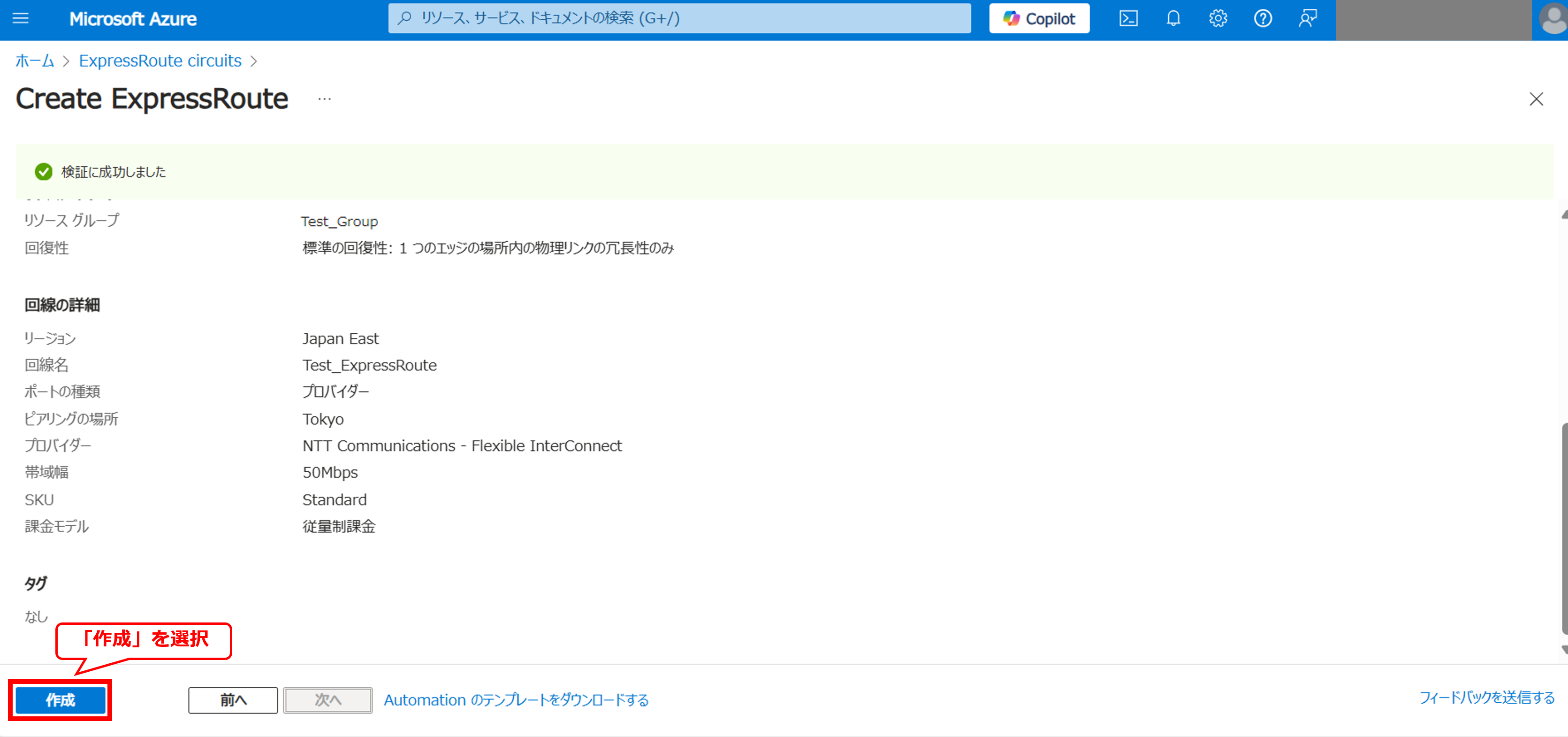 9.8.5 ExpressRoute回線の作成画面③(Azure)