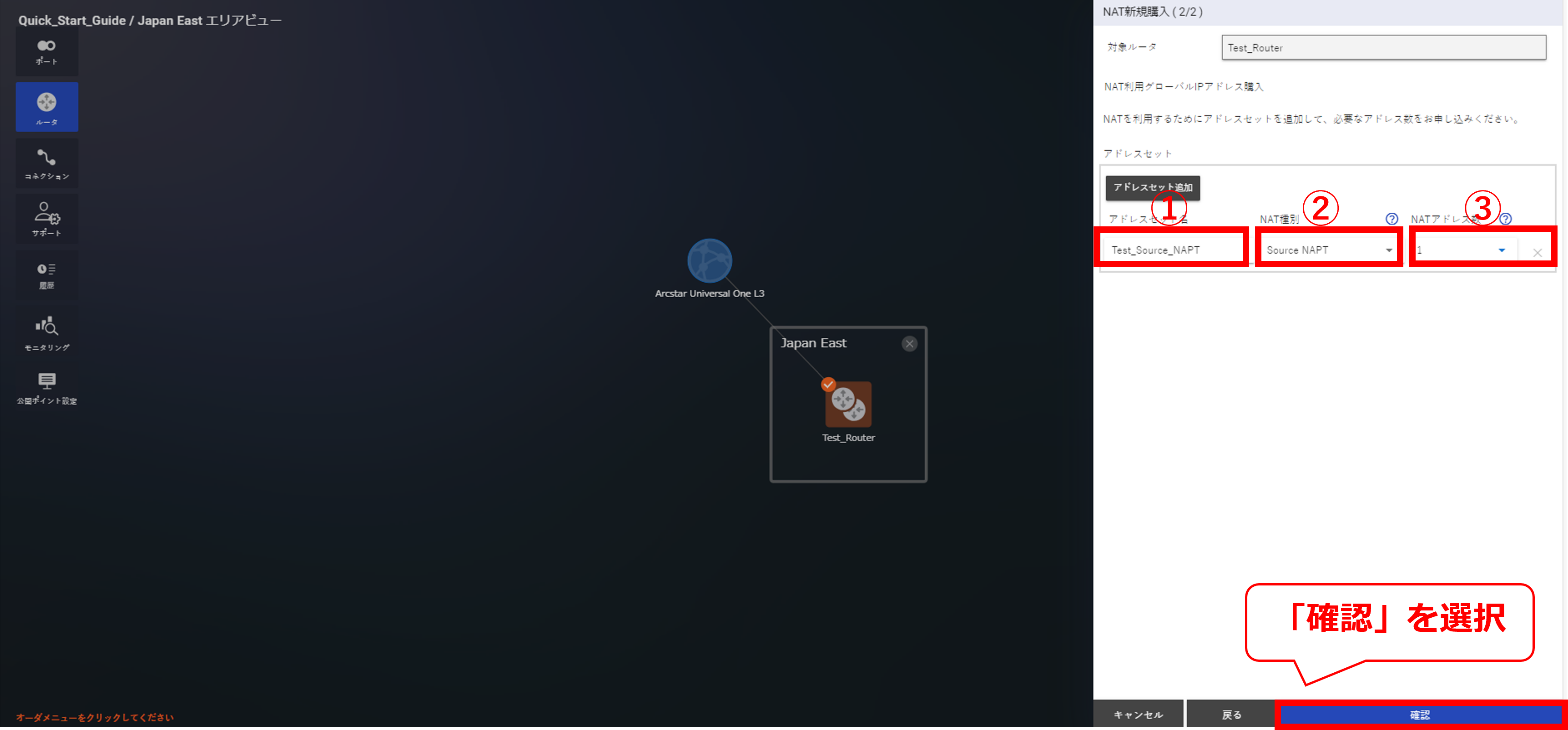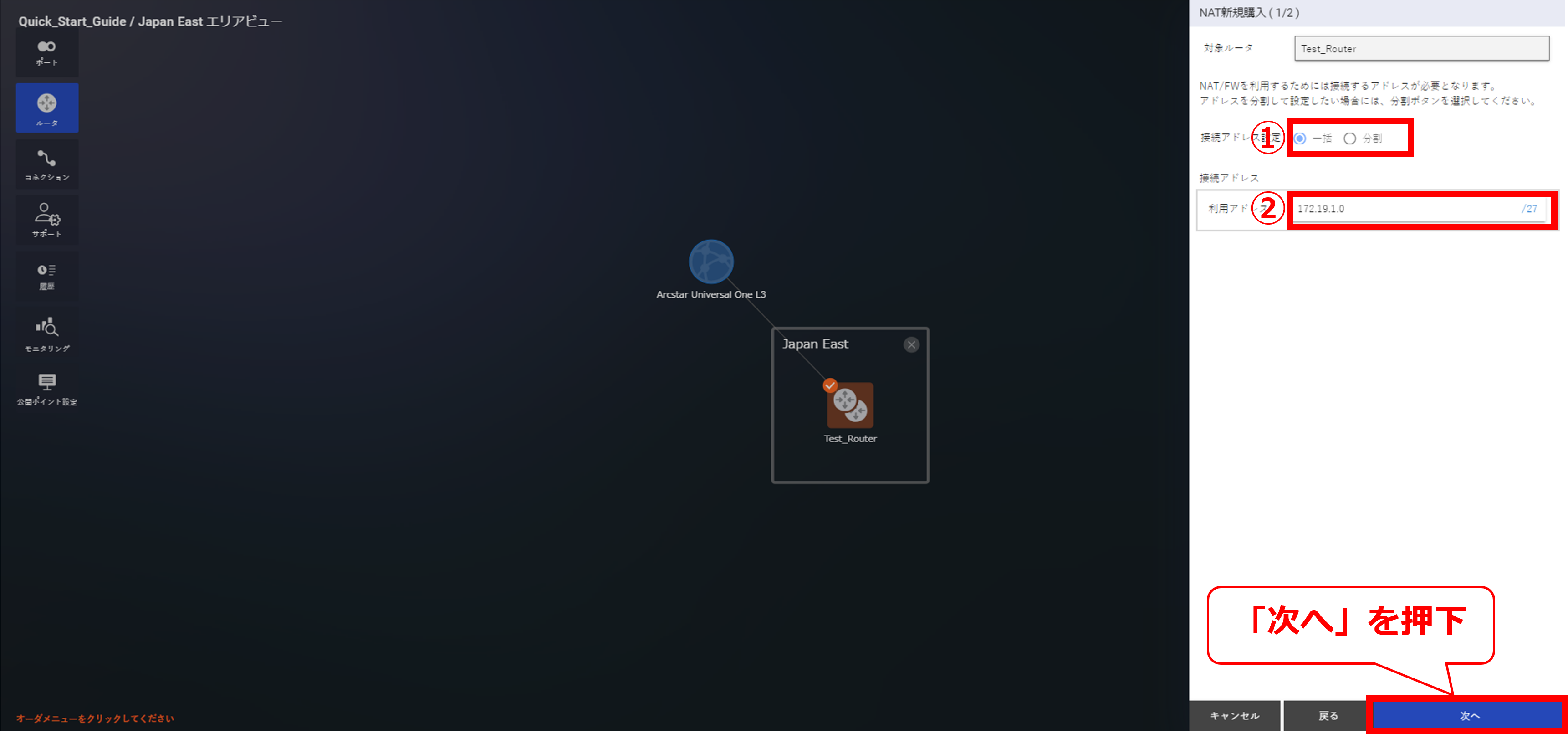 クラウドサービス側へ広告するNATのグローバルIPアドレスを選択 |