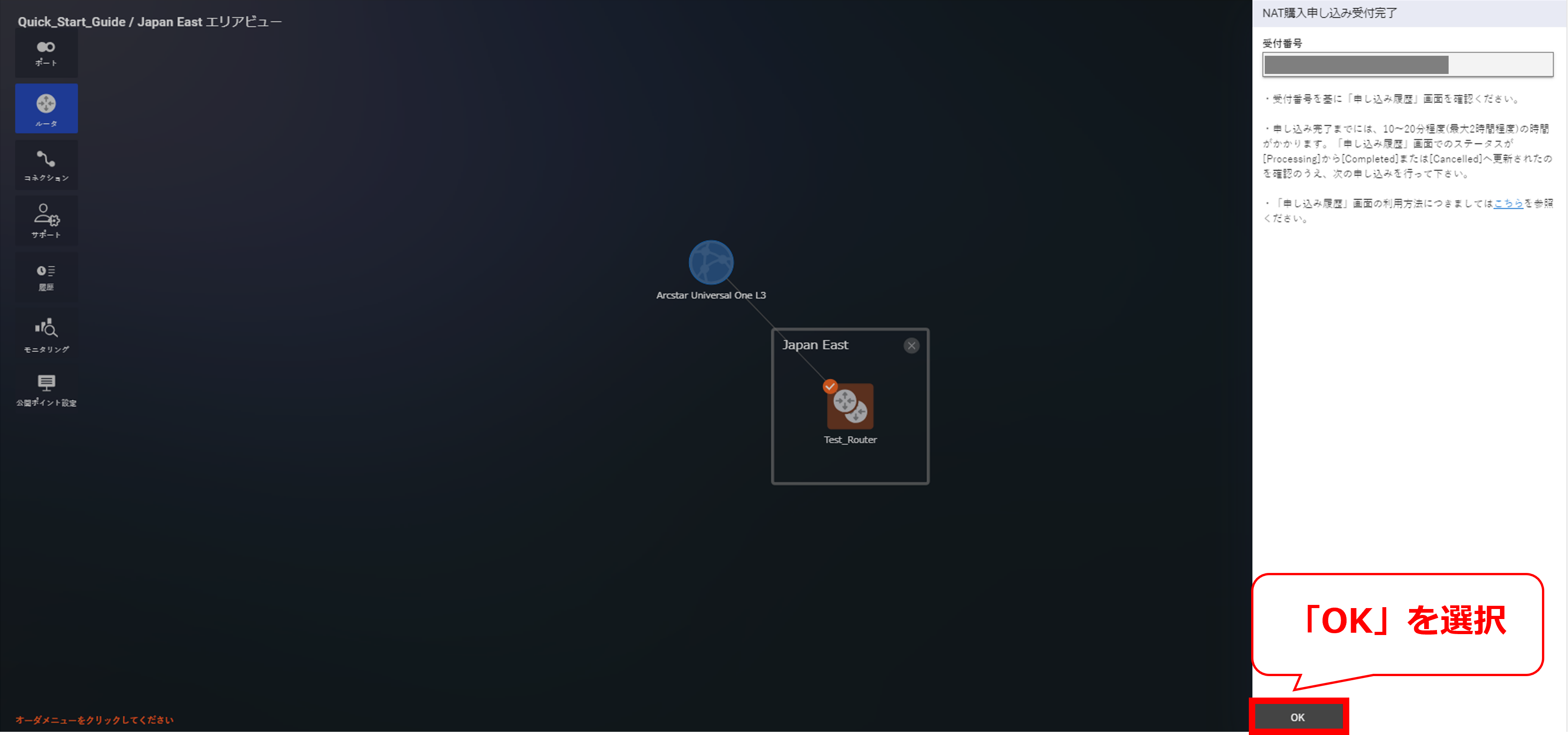 本手順では「Tokyo-1」をプルダウンから選択 ※ |
