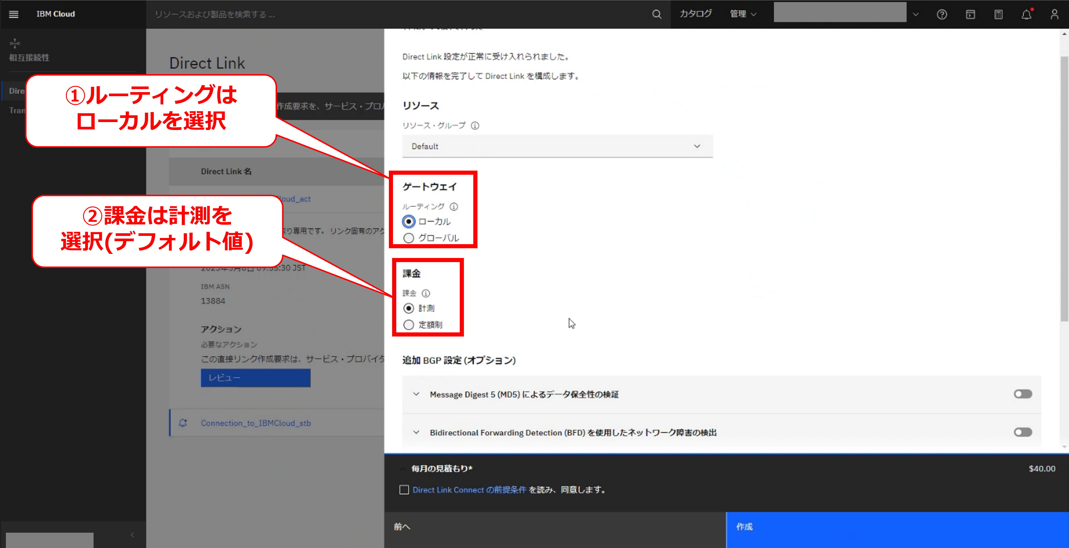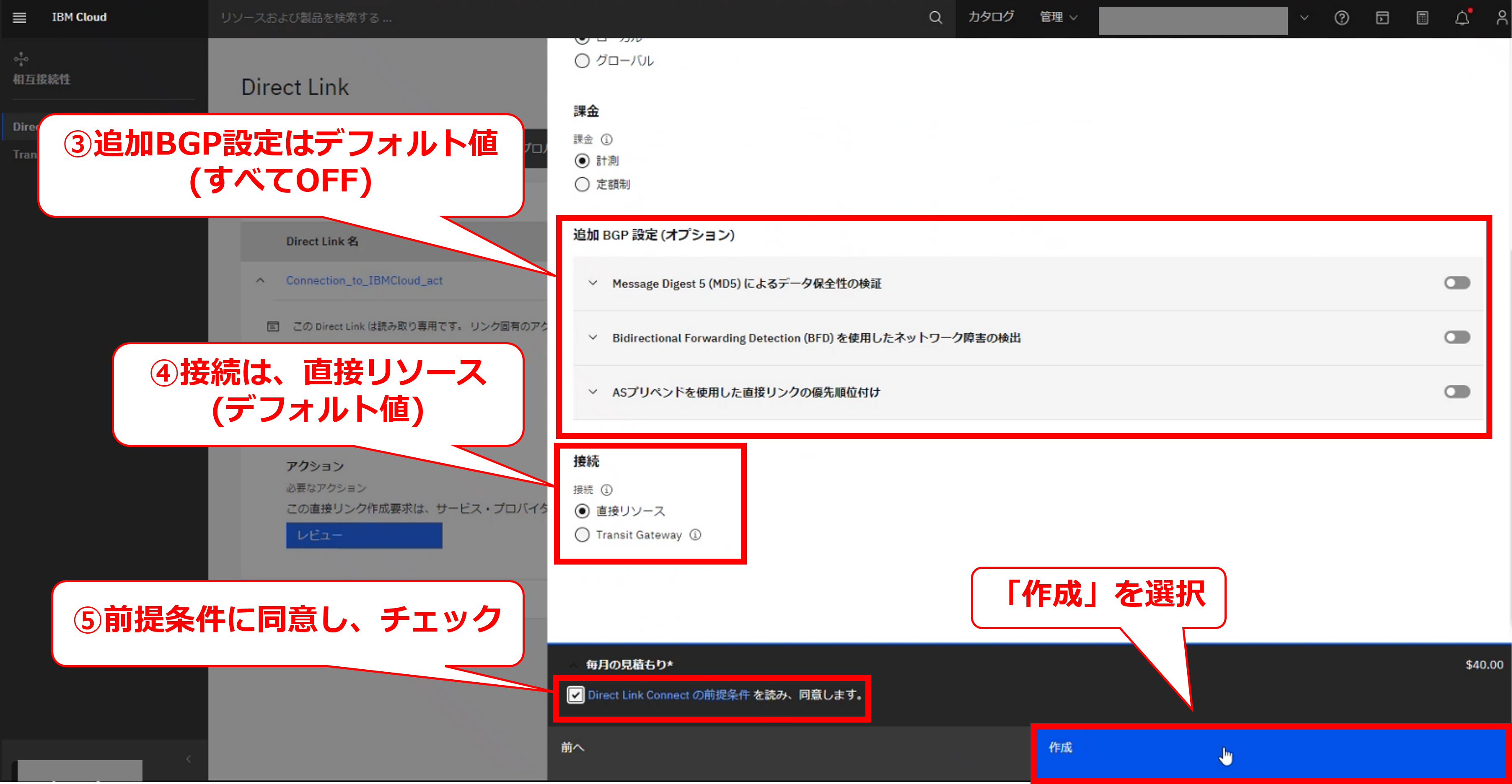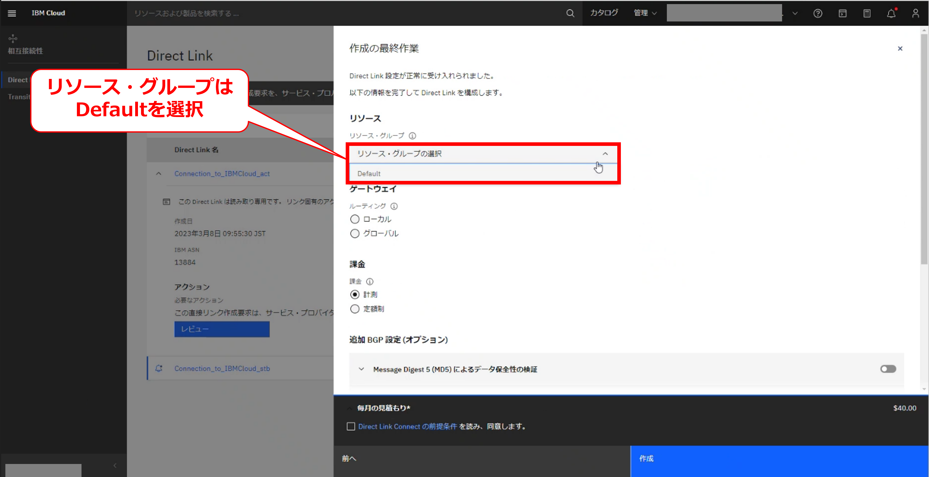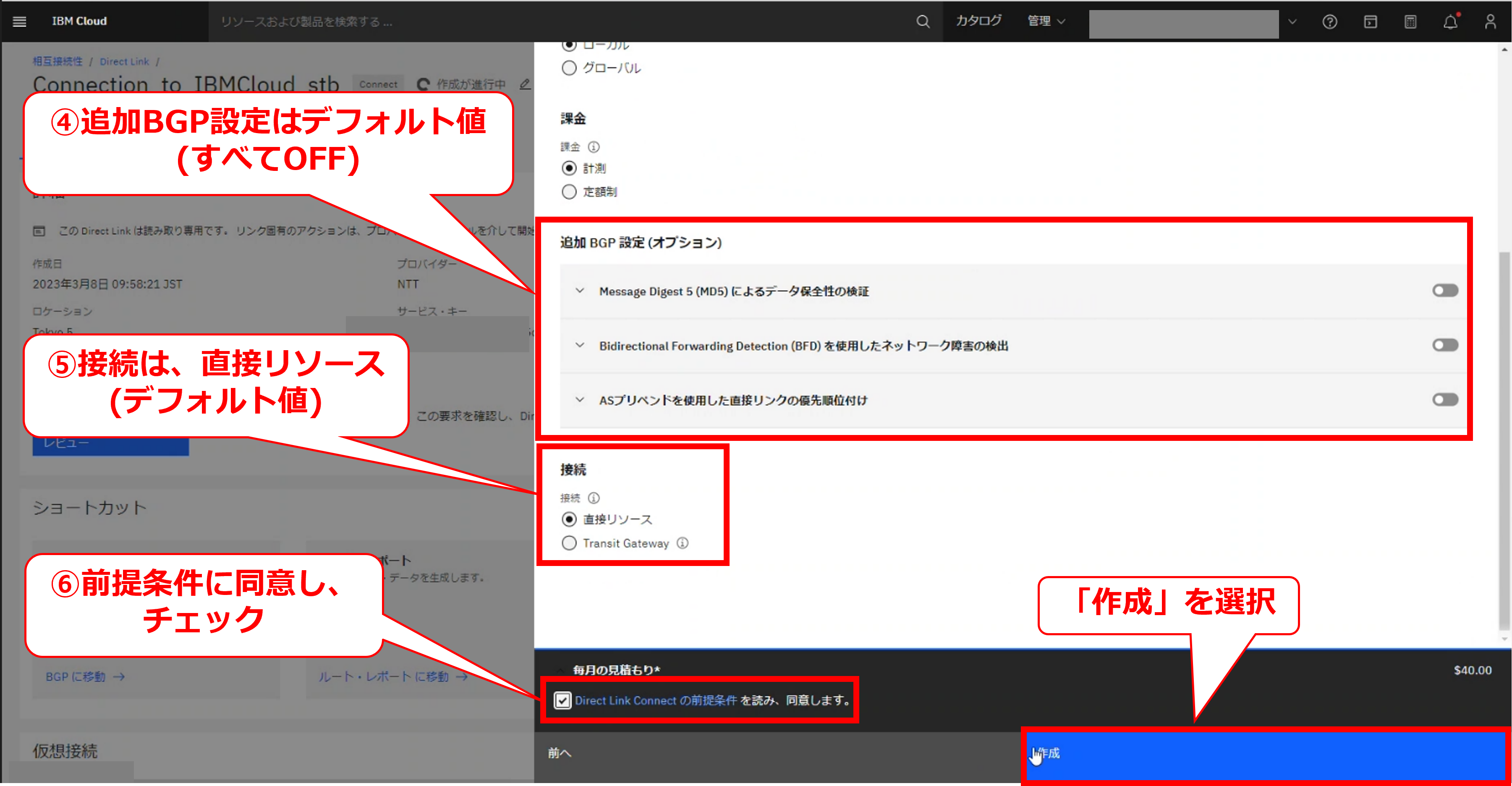 FIC-Connection(IBM Cloud Direct Link 2.0(TOK05))の申し込み