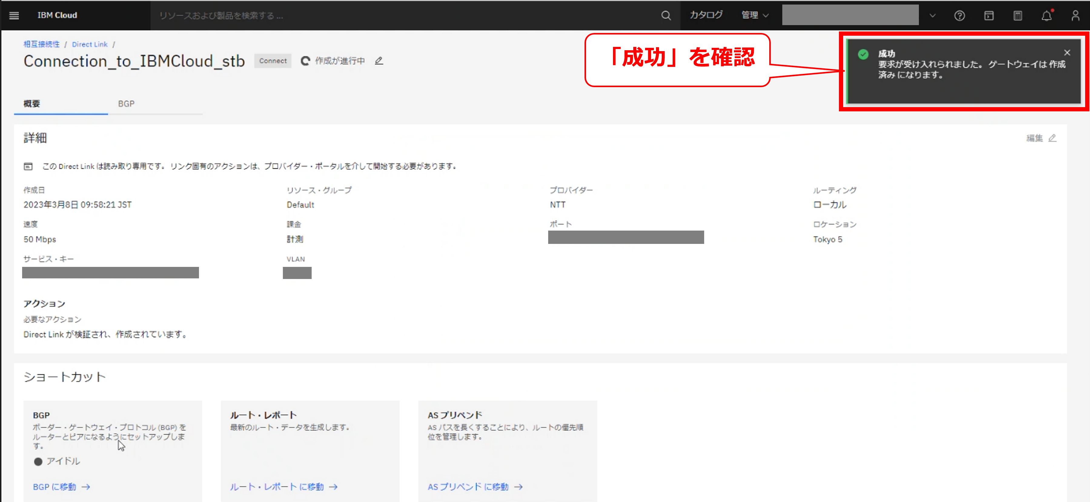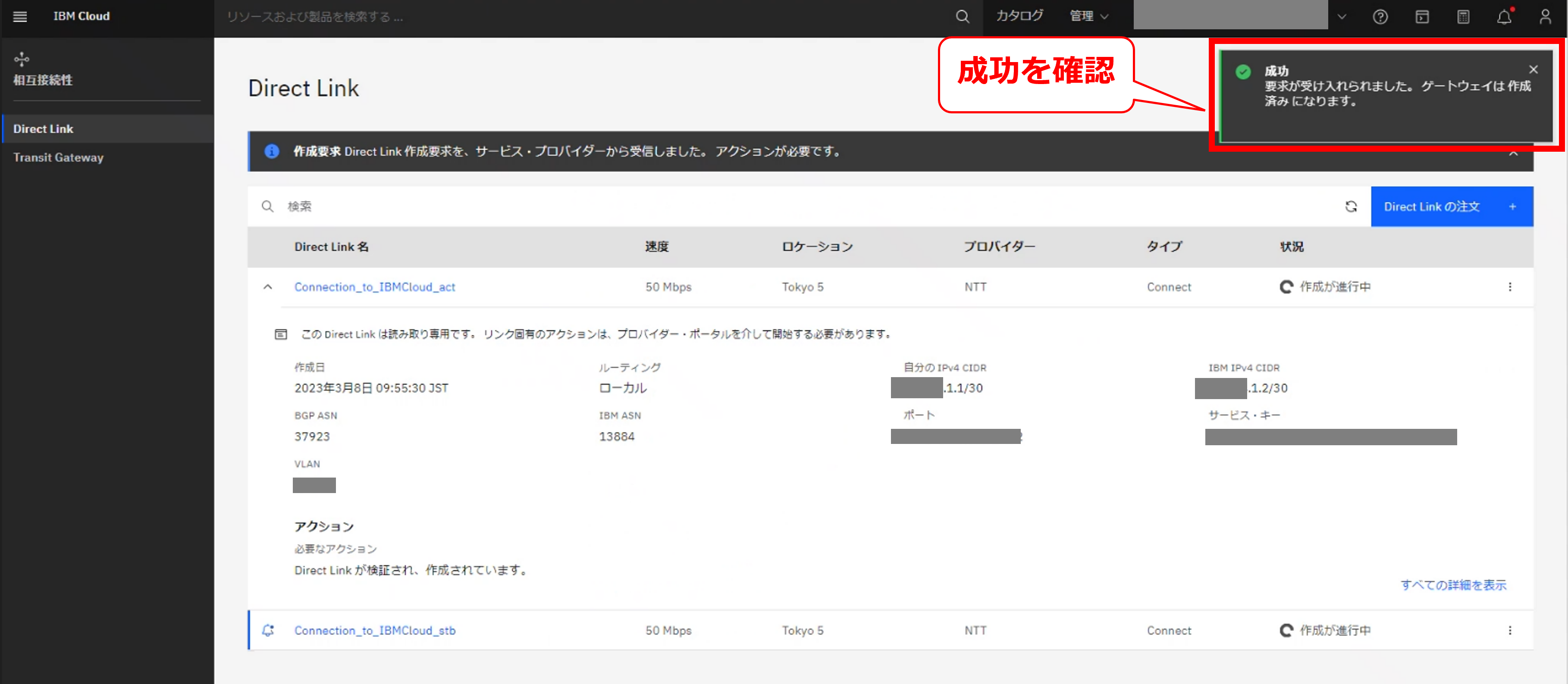 FIC-Connection(IBM Cloud Direct Link 2.0(TOK05))の新設完了