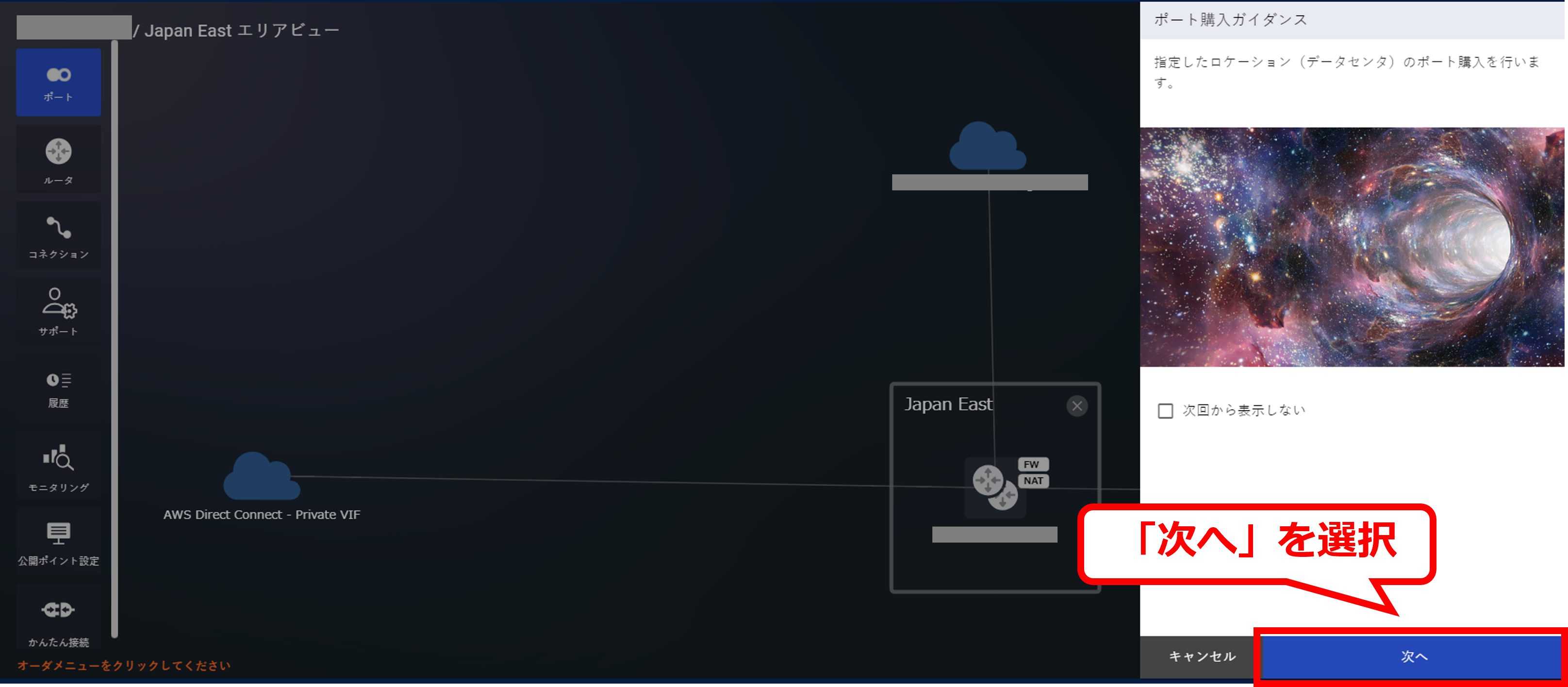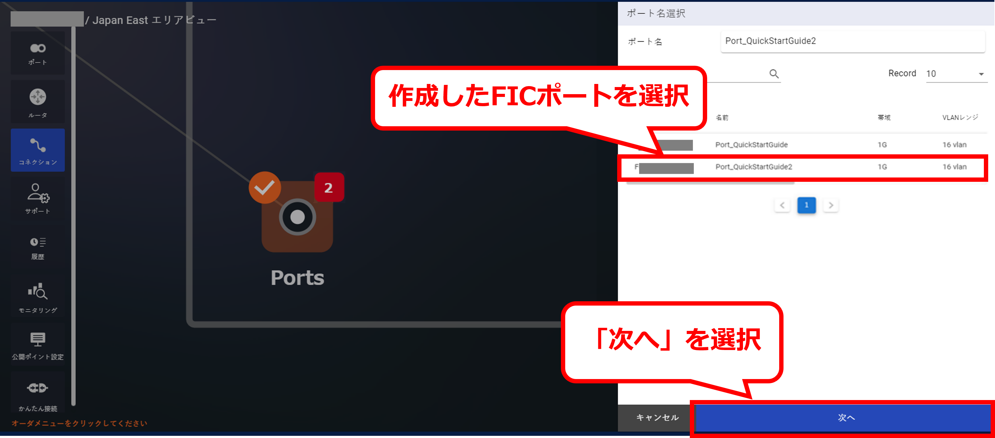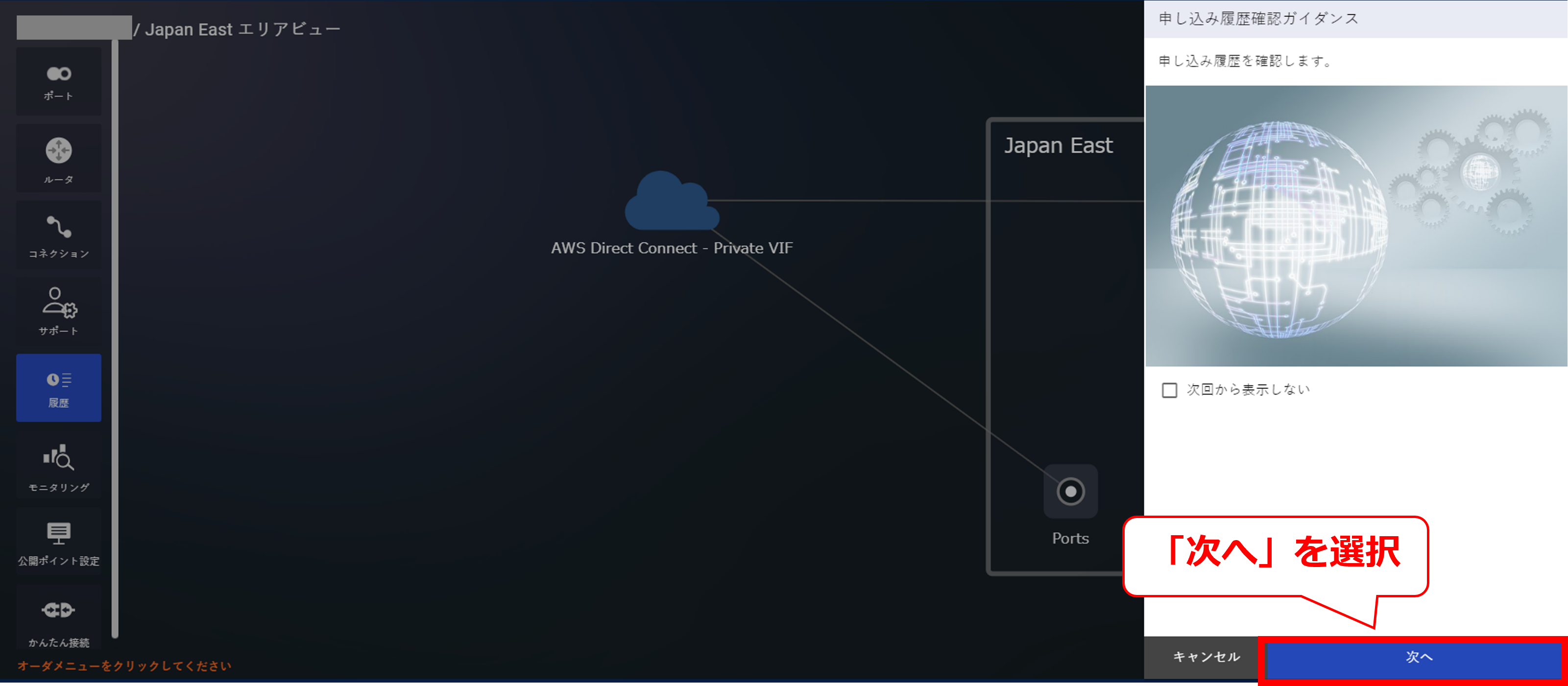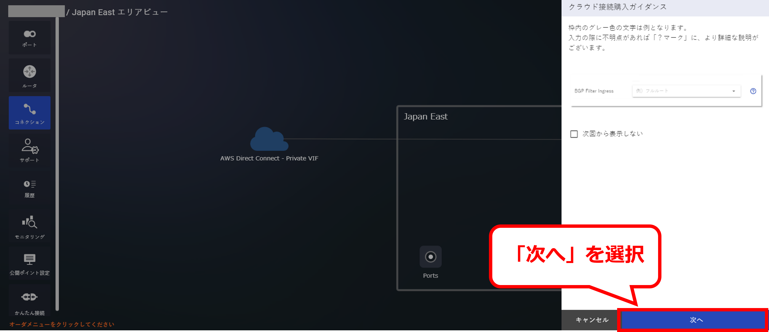 - 物理回線の敷設後、次項に示すアクティベート操作を行ってください。※AWS側の作業(手順:6.7~6.9)についてはポートのアクティベート前でも実施可能です。