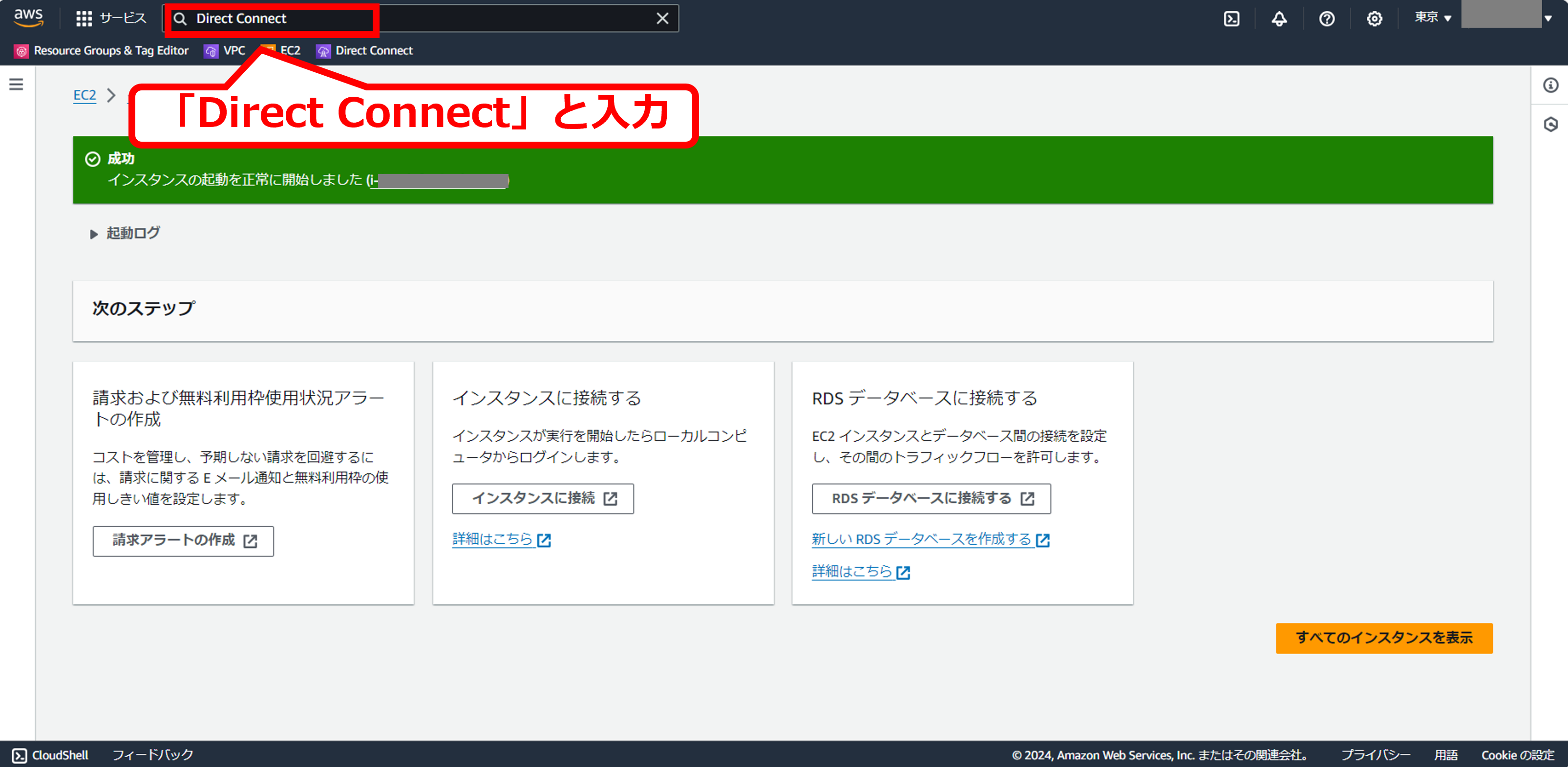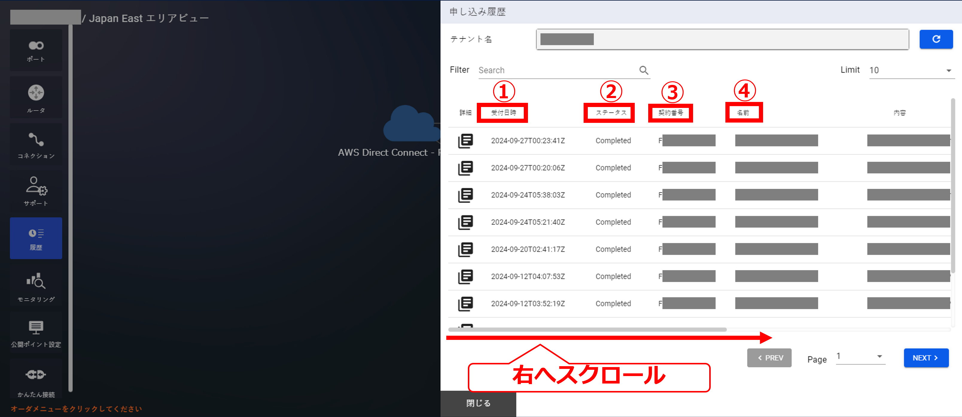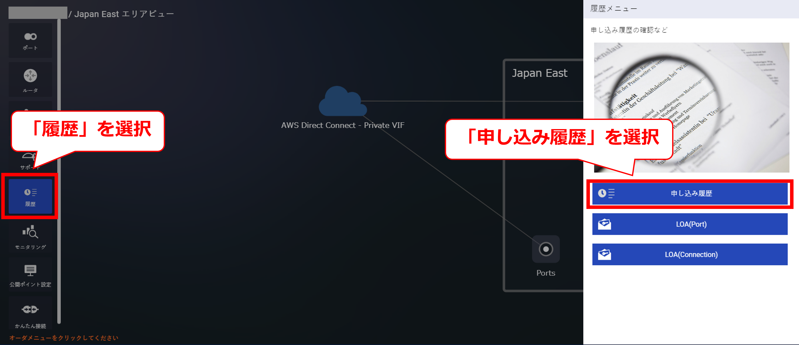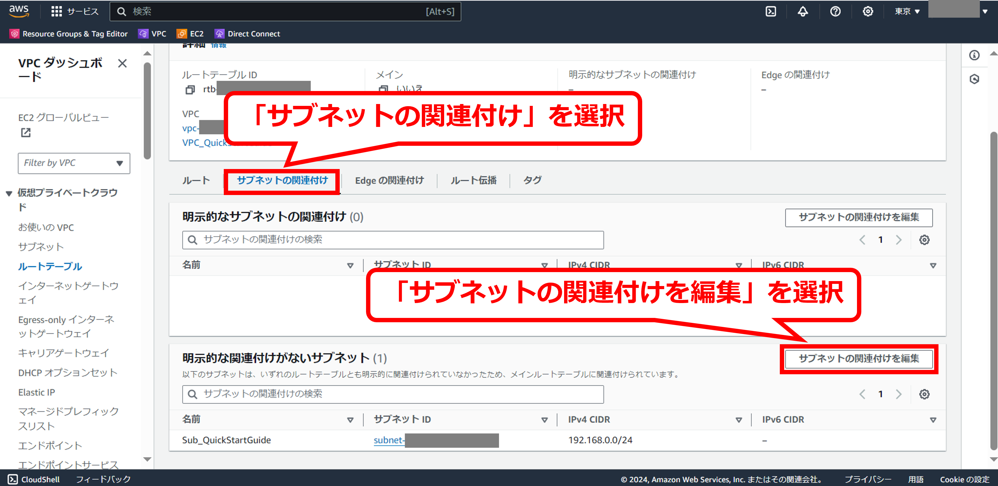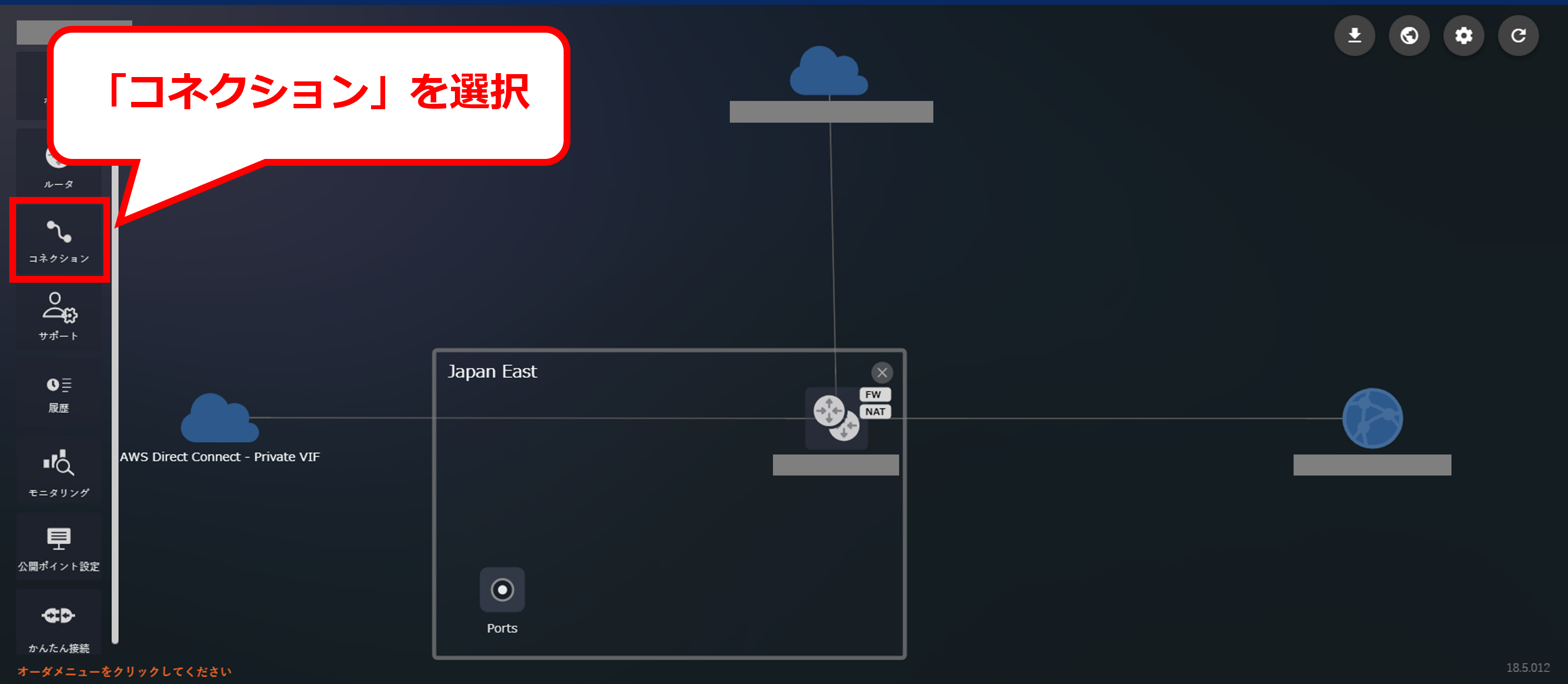 - 物理回線の敷設後、次項に示すアクティベート操作を行ってください。※AWS側の作業(手順:6.7~6.9)についてはポートのアクティベート前でも実施可能です。