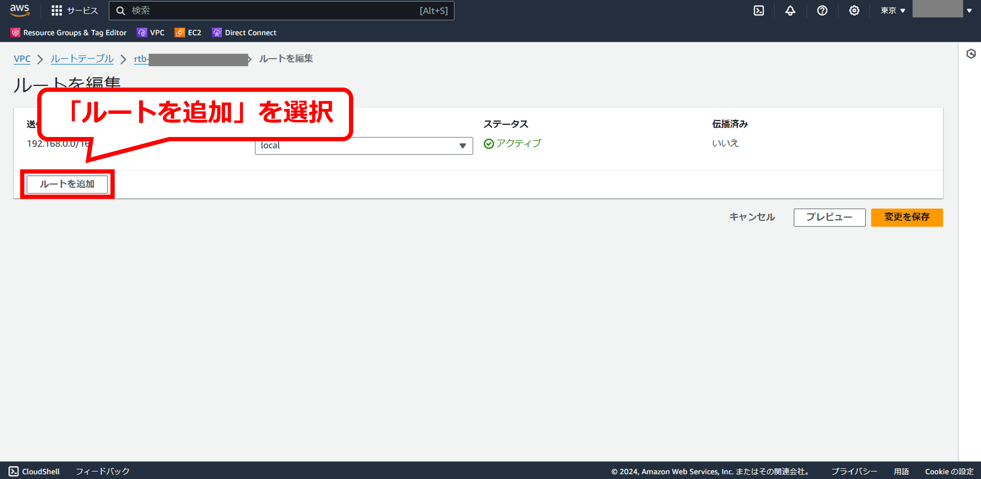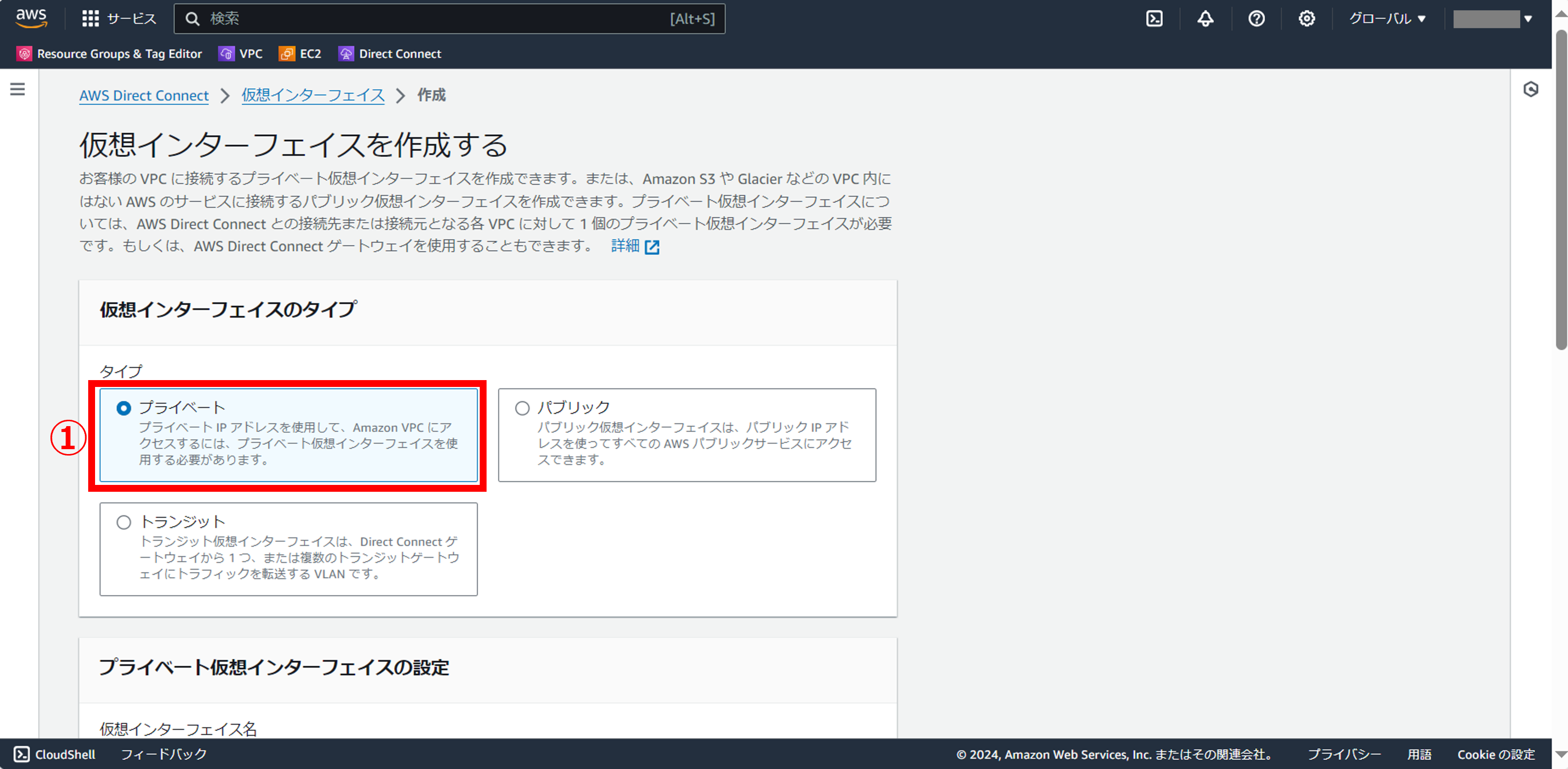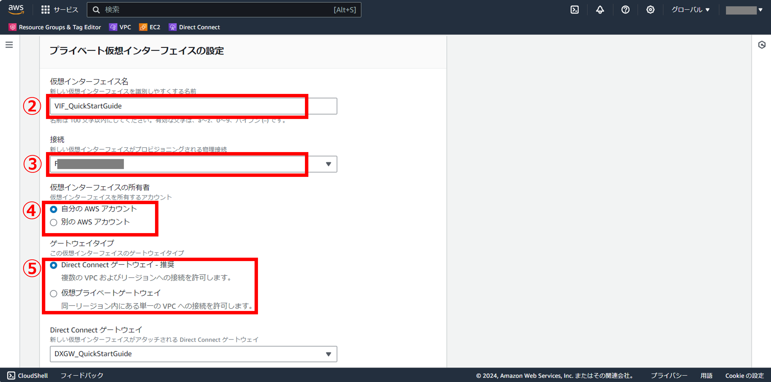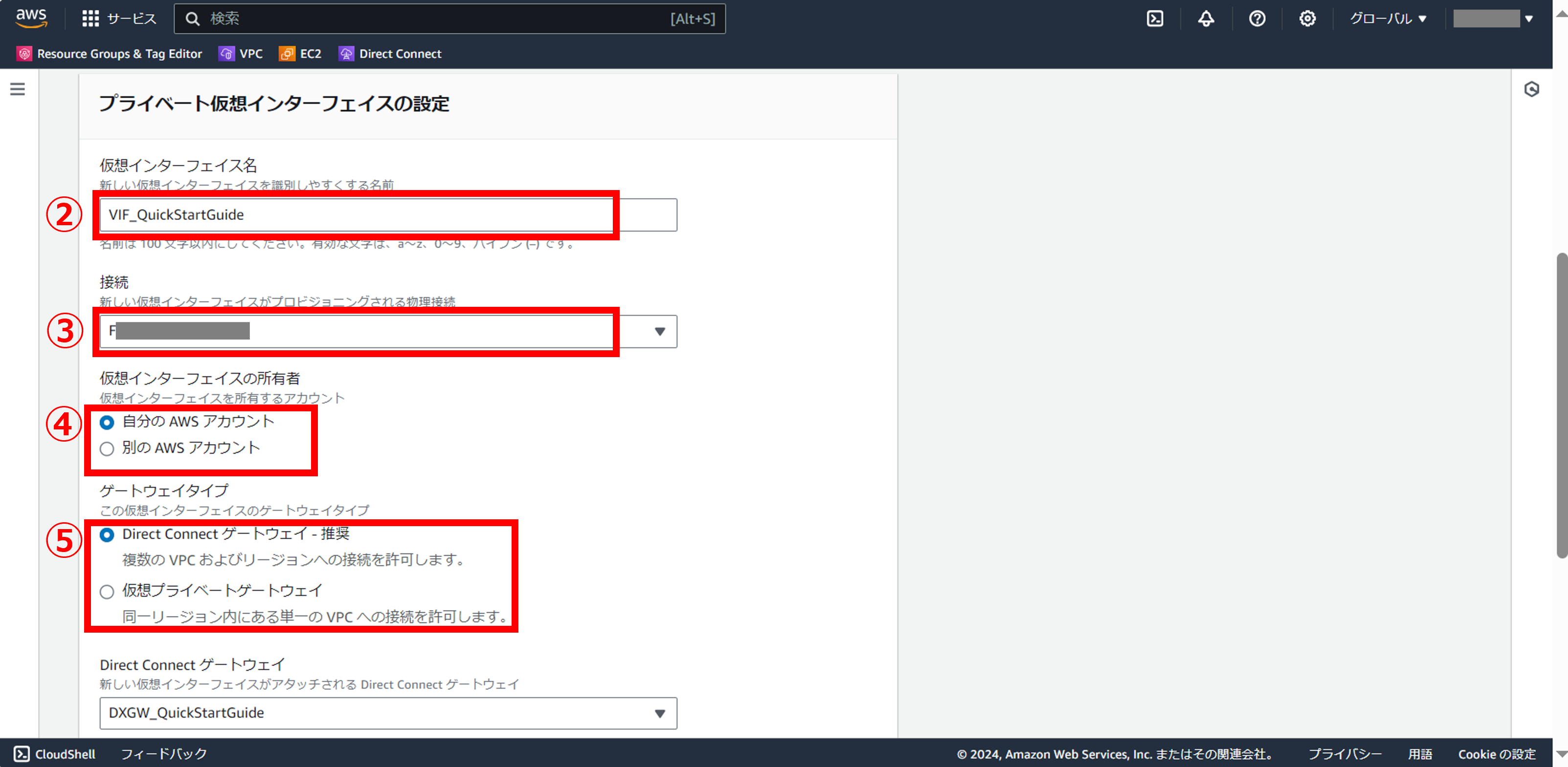 本手順では「Direct Connect ゲートウェイ - 推奨」を選 |