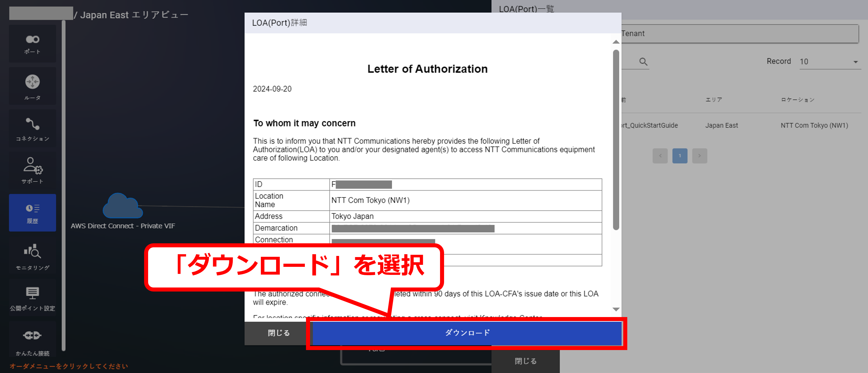 - LOAには接続先情報が記載されています。LOAを参考に物理回線をお申し込みください。