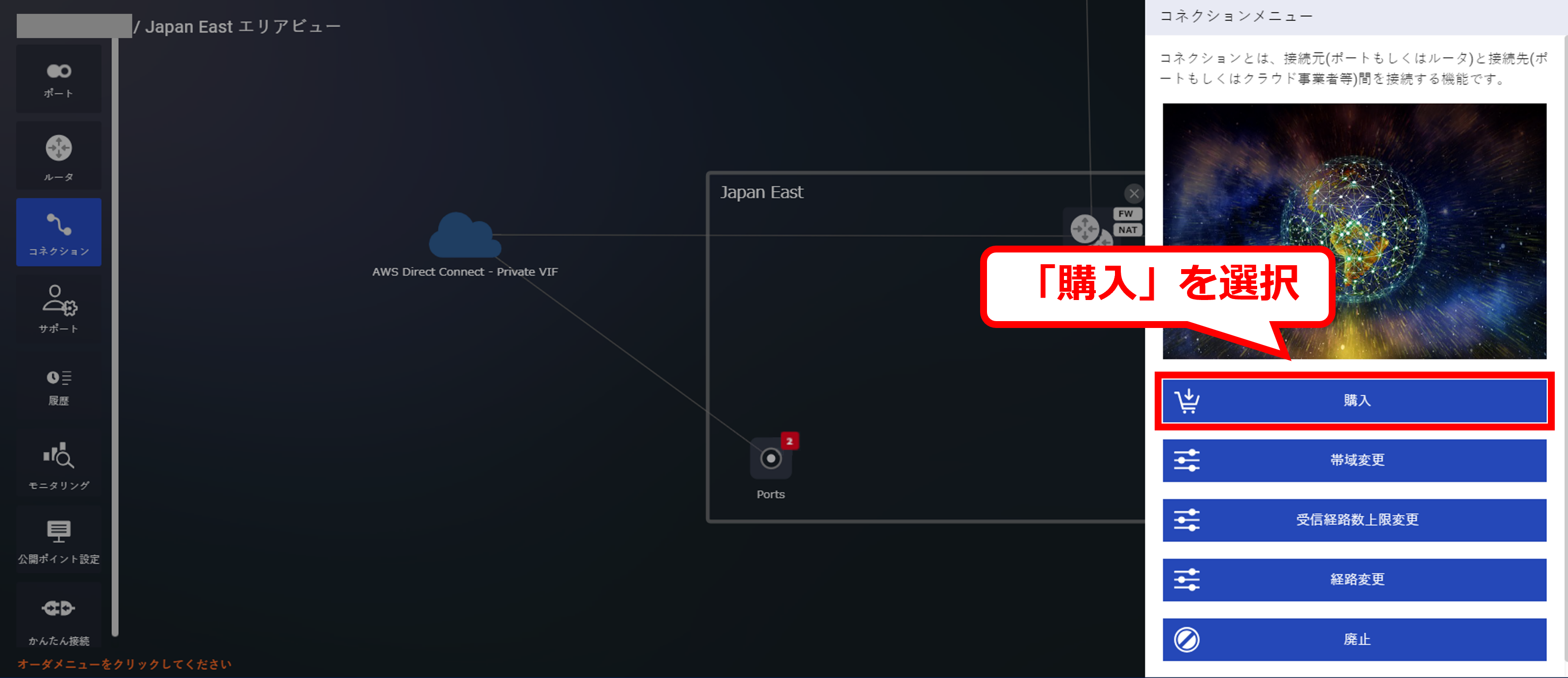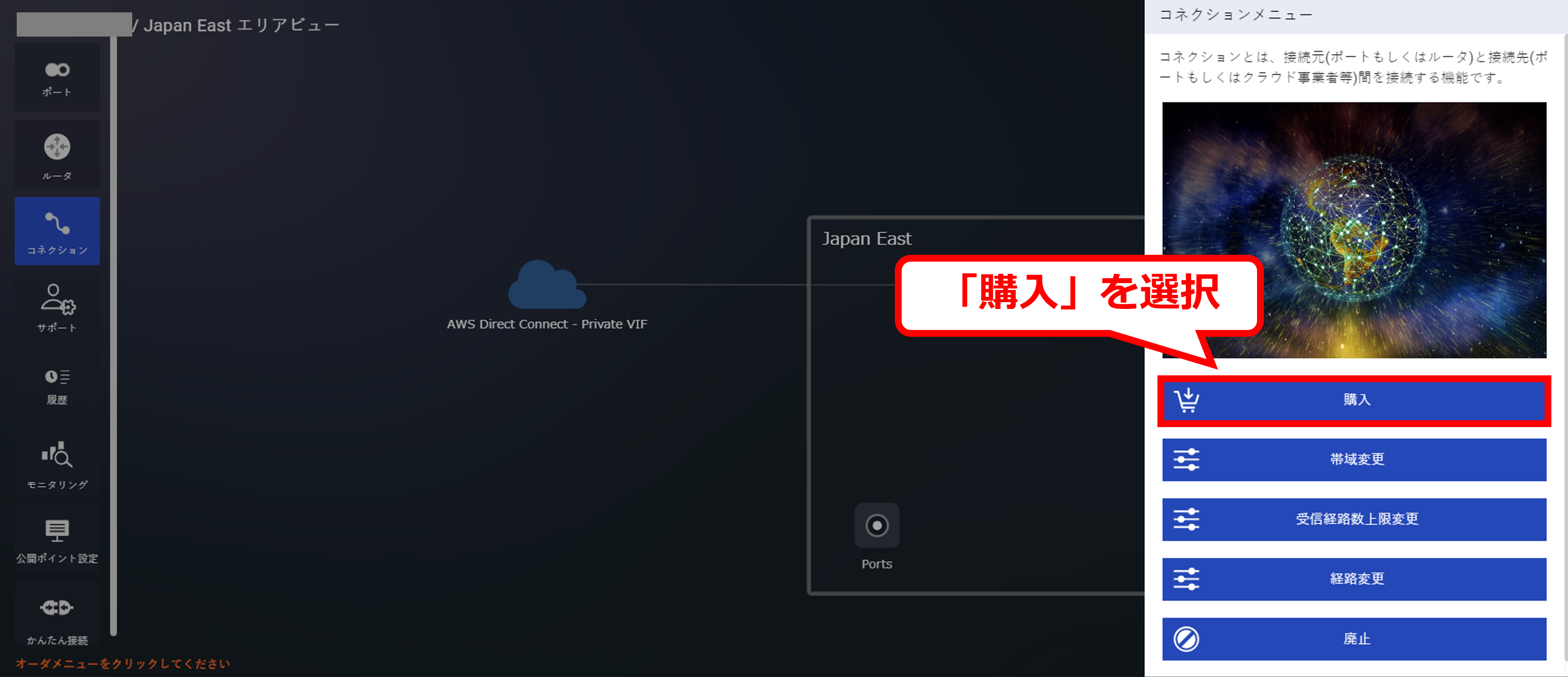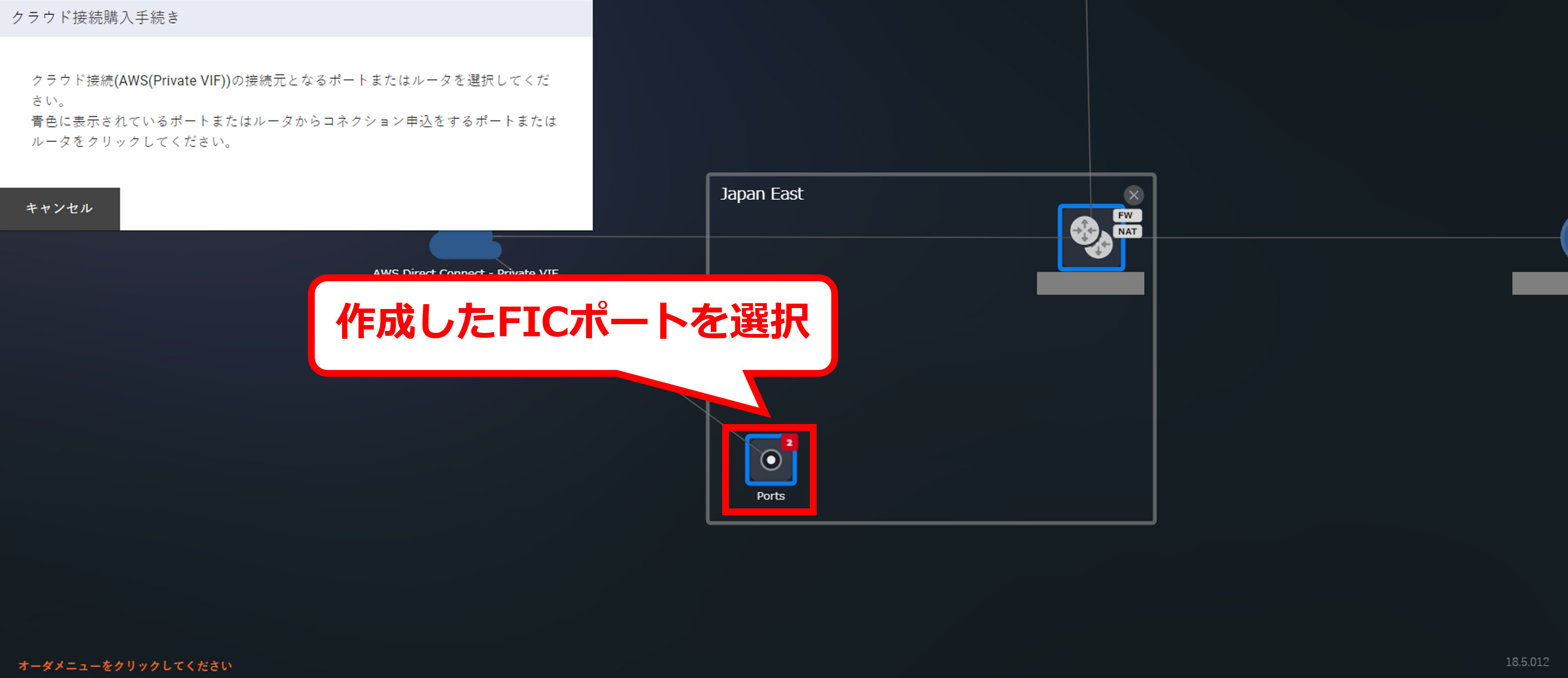 FIC-ConsoleでAWS(Private VIF)のコネクションを購入 |