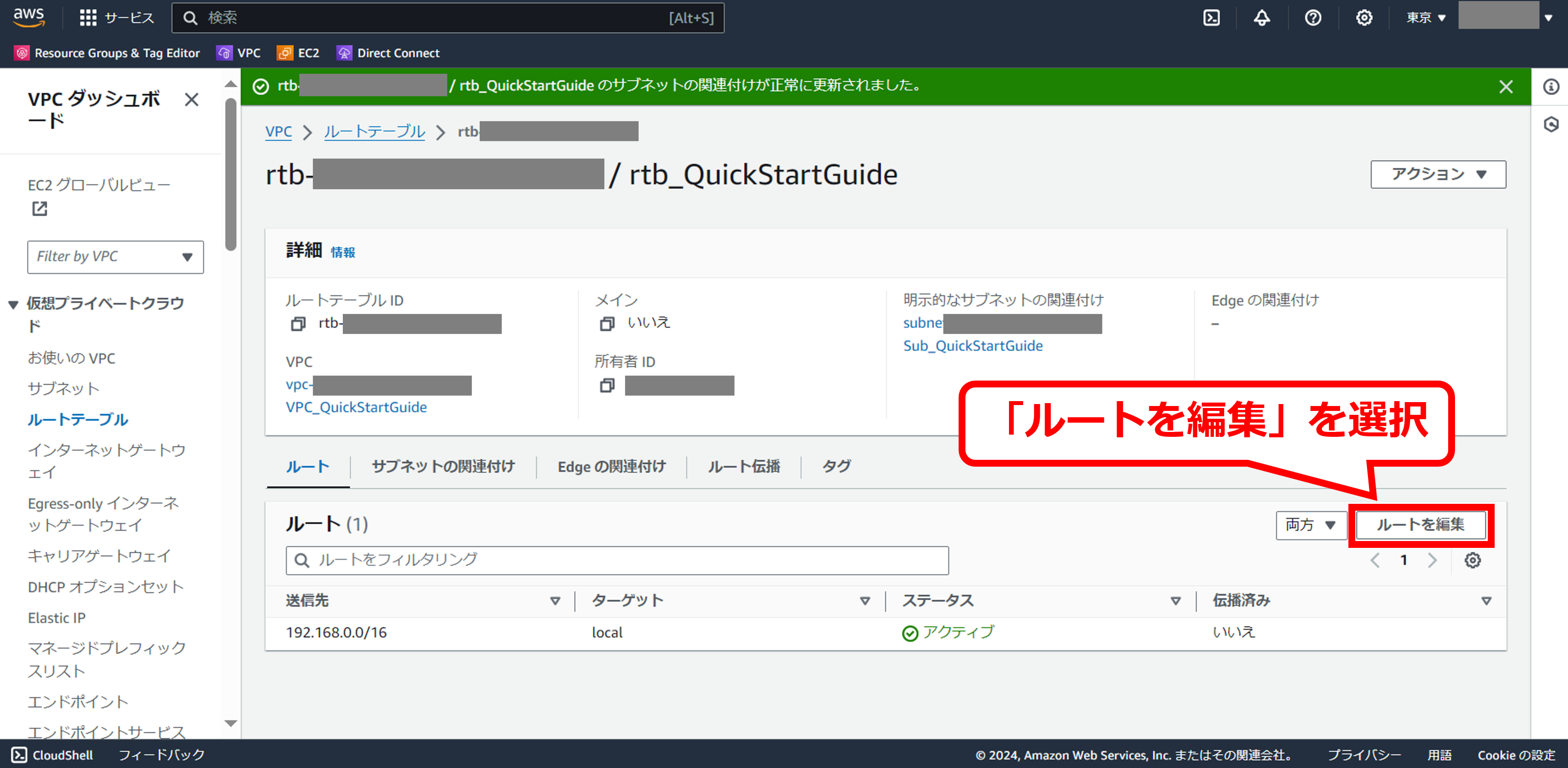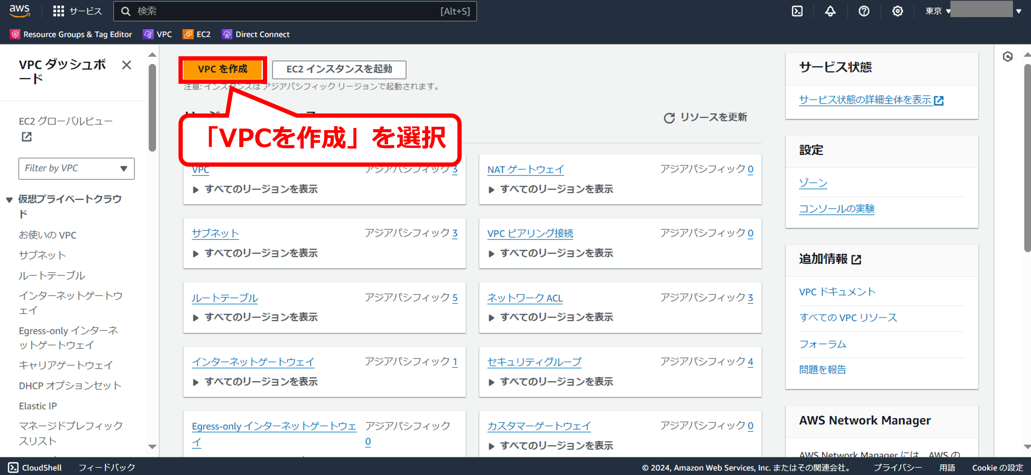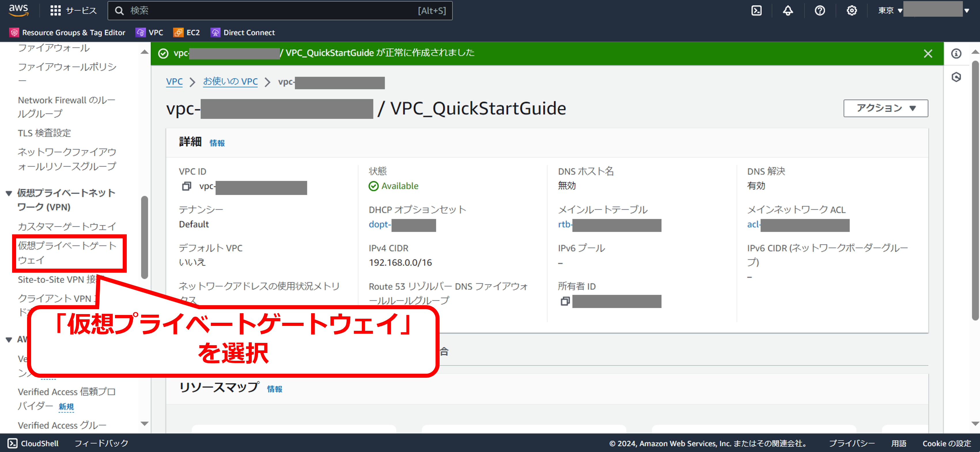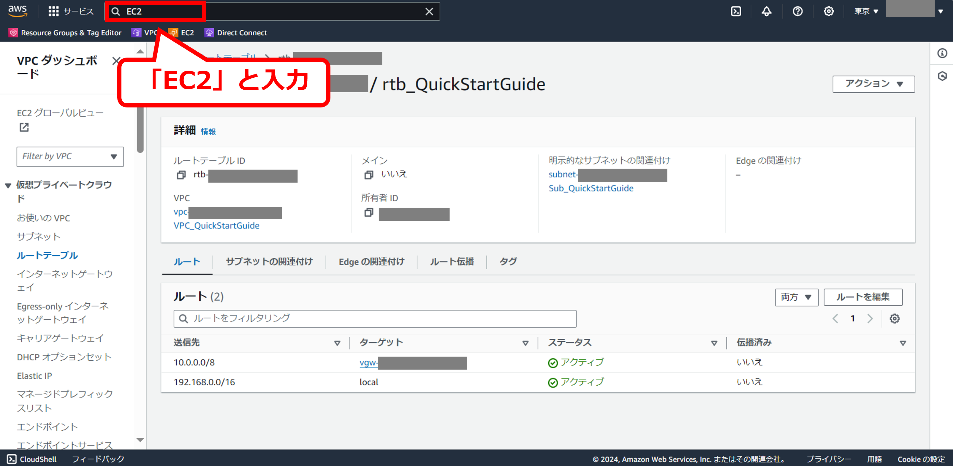 6.7. AWSコンソール作業(VPC、仮想プライベートゲートウェイ等の作成)¶