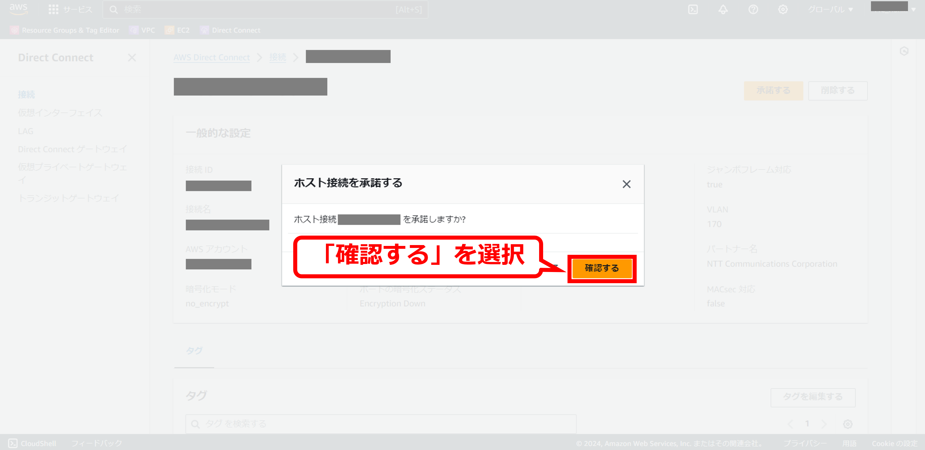 6.11.2.コネクションの承認と仮想インターフェイスの作成(AWS作業)