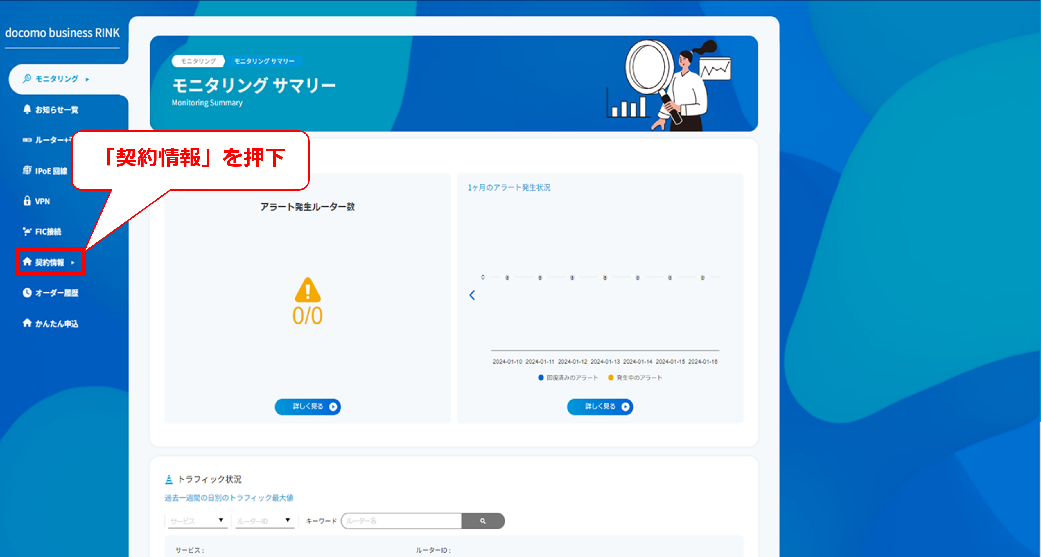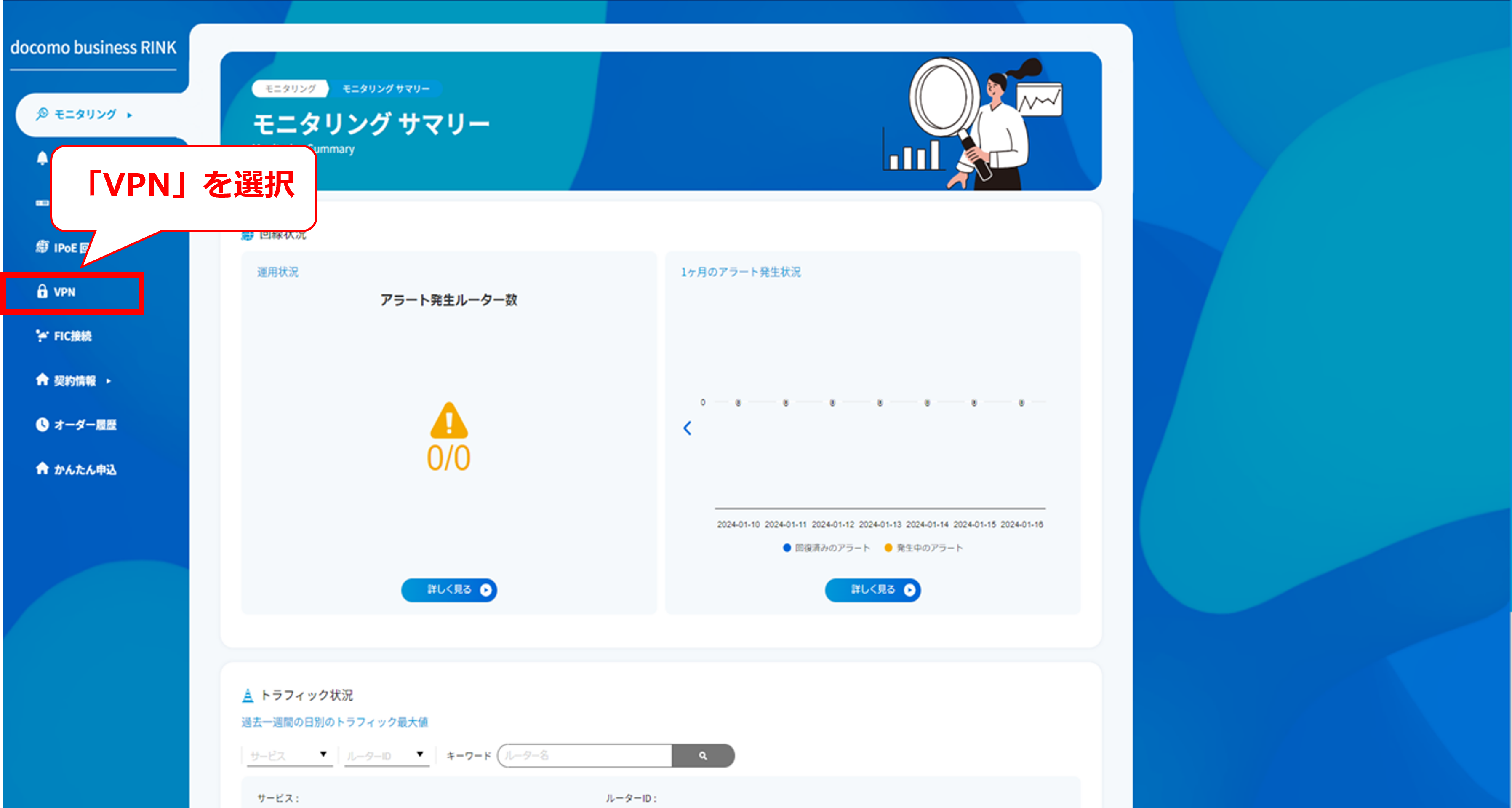 - docomo business RINK セキュアドWANのモニタリング機能については以下をご参照ください。