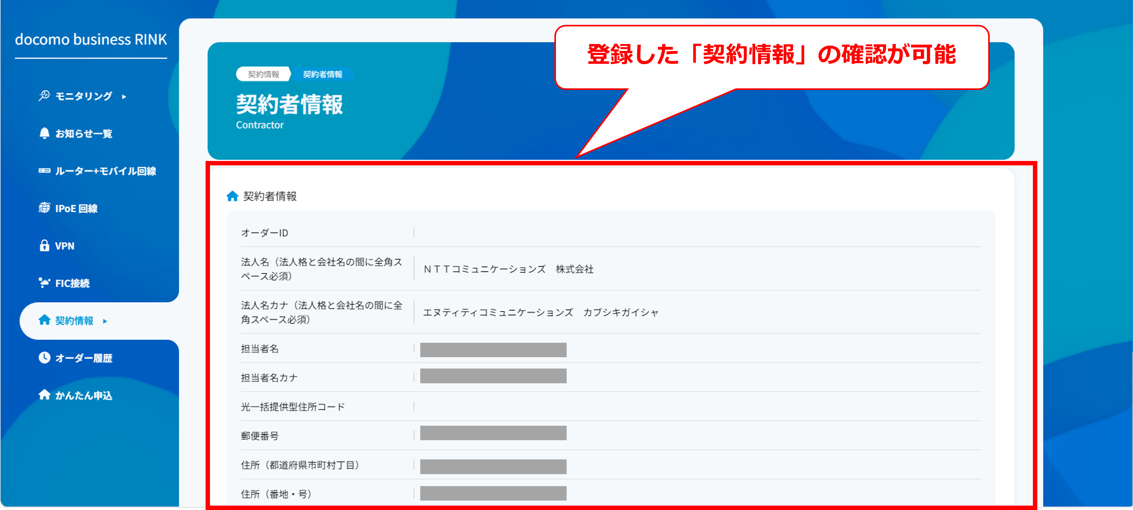 1.6.2 契約者情報の入力画面①(docomo business RINK セキュアドWAN)