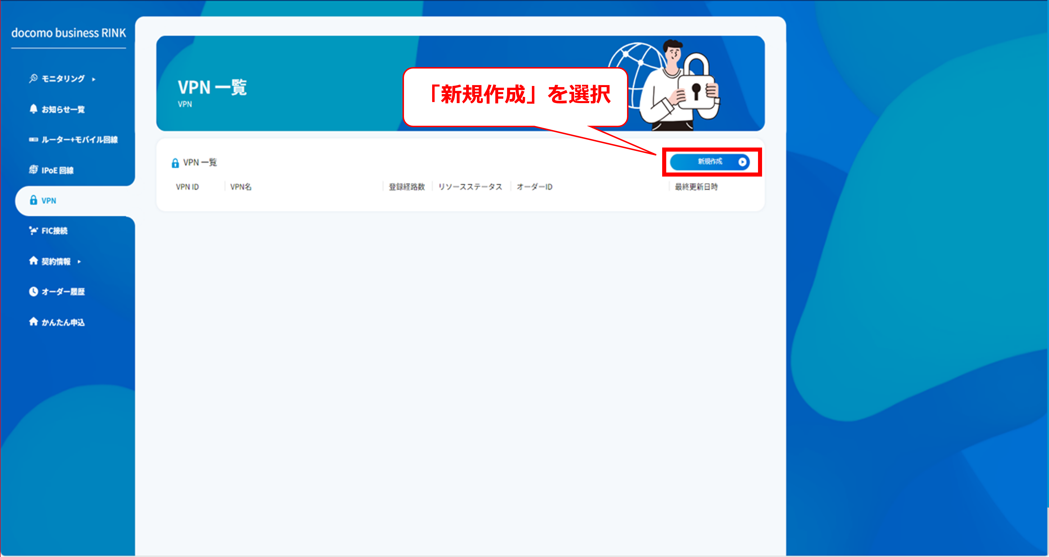 1.7.1 VPNを選択(docomo business RINK セキュアドWAN)