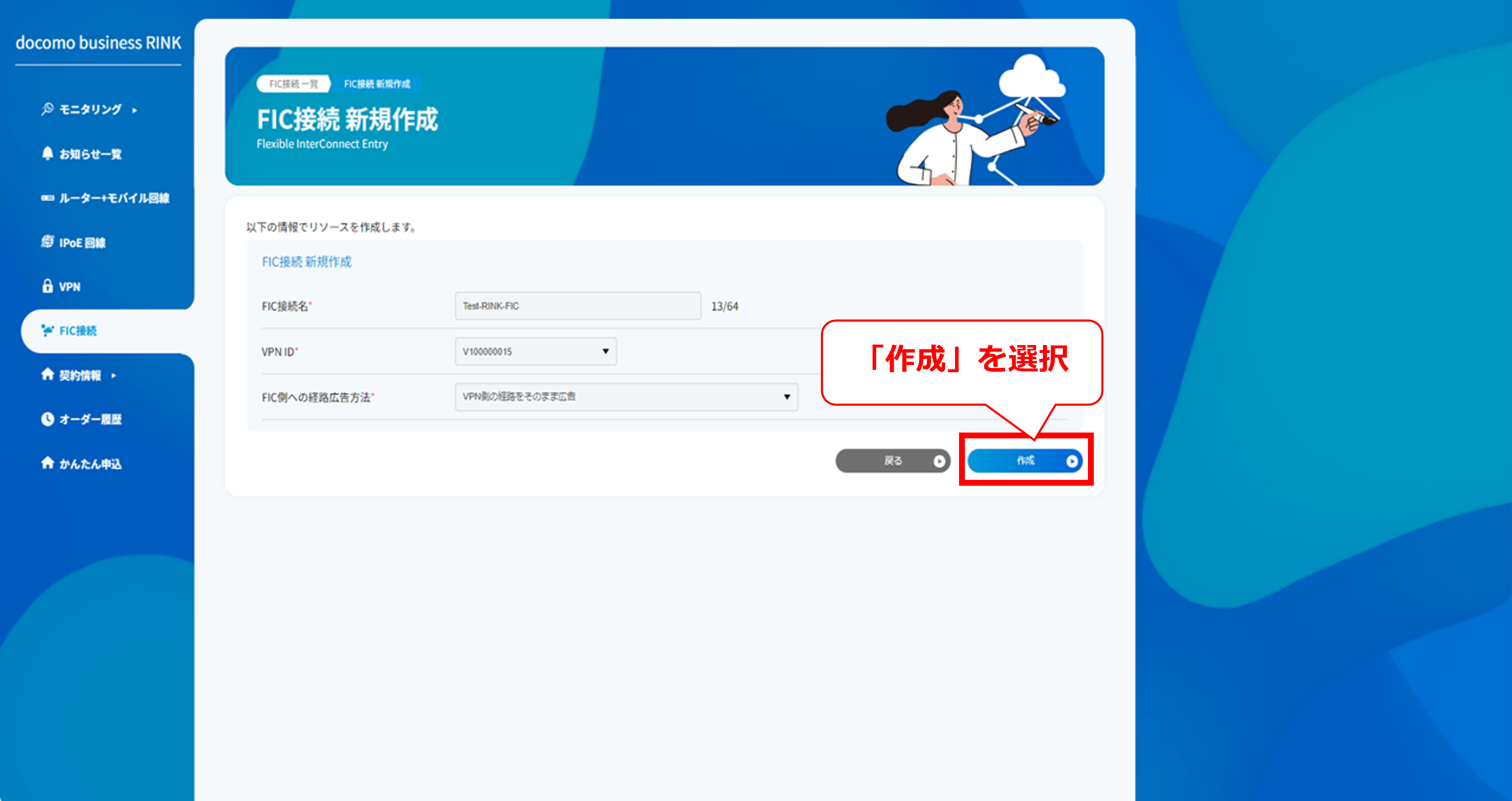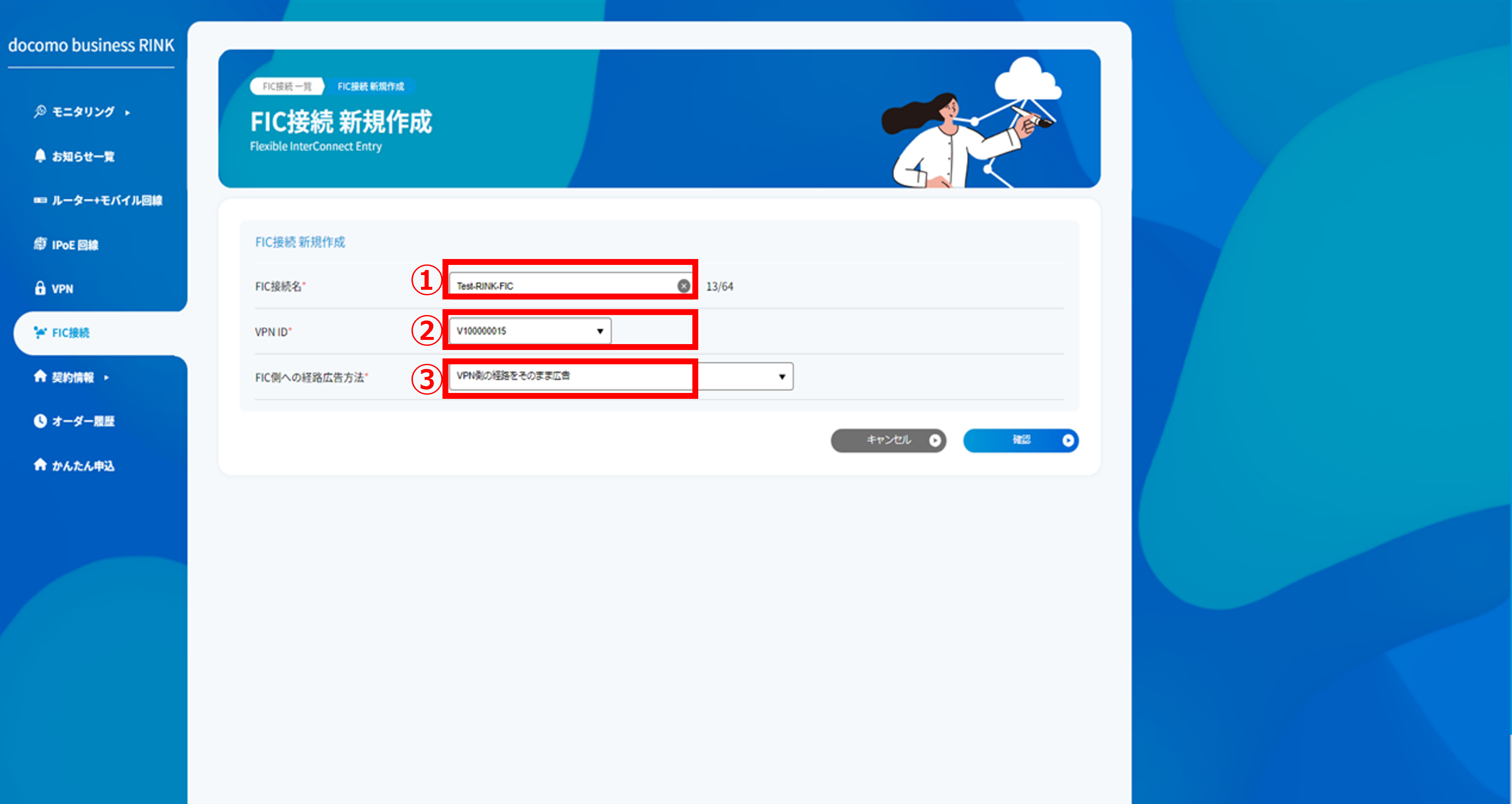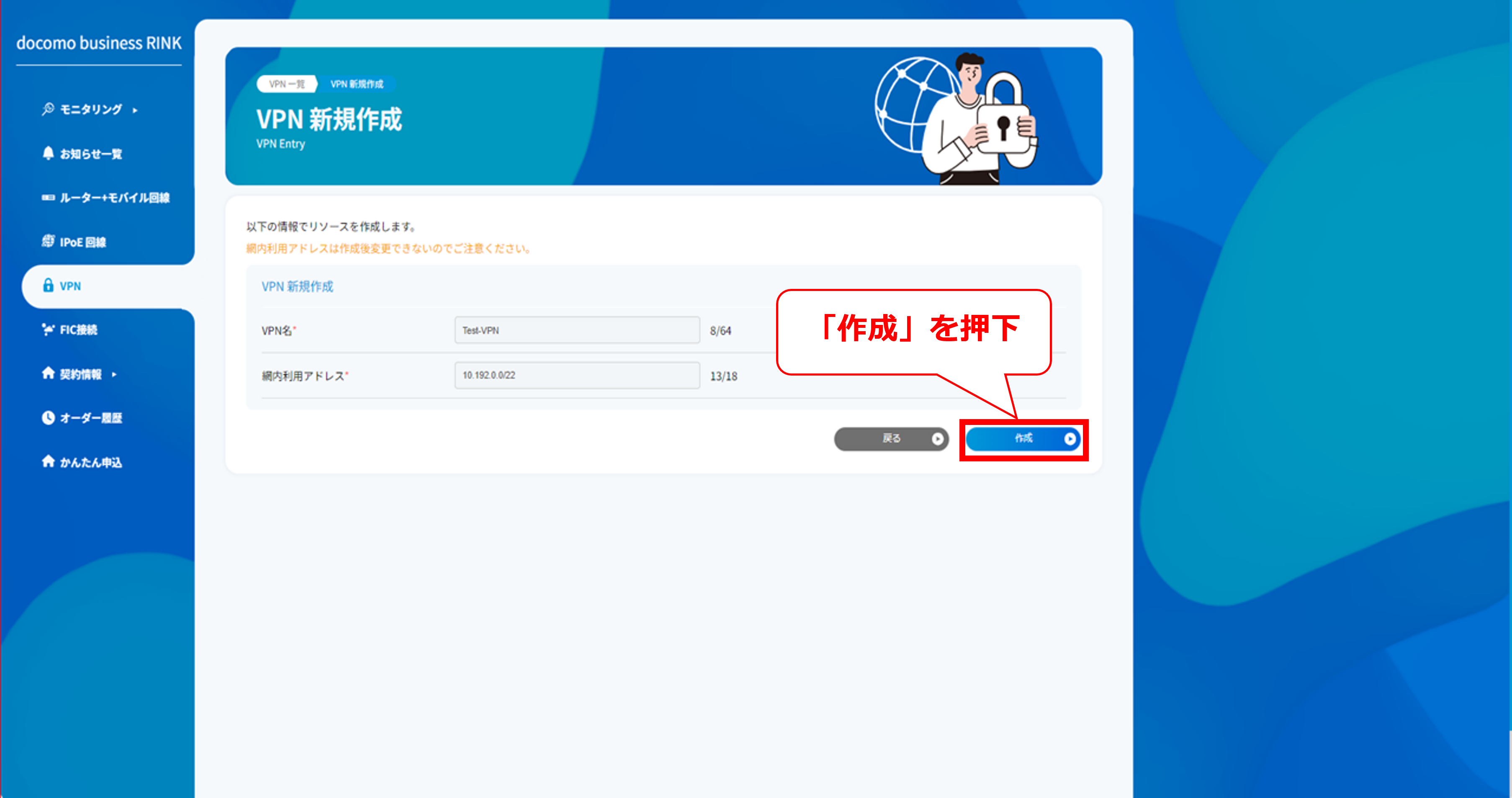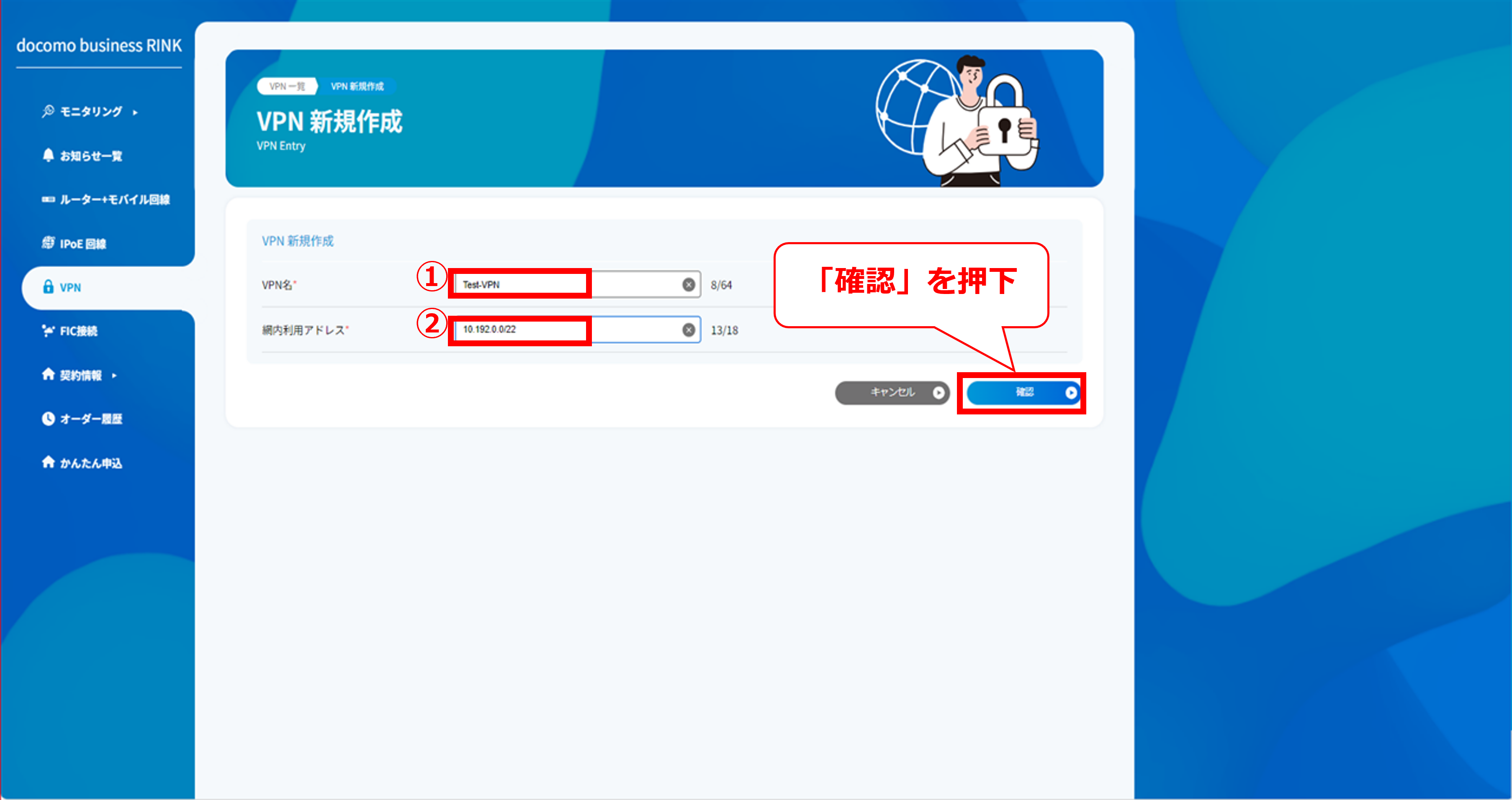 1.7.3 VPN新規作成画面①(docomo business RINK セキュアドWAN)
