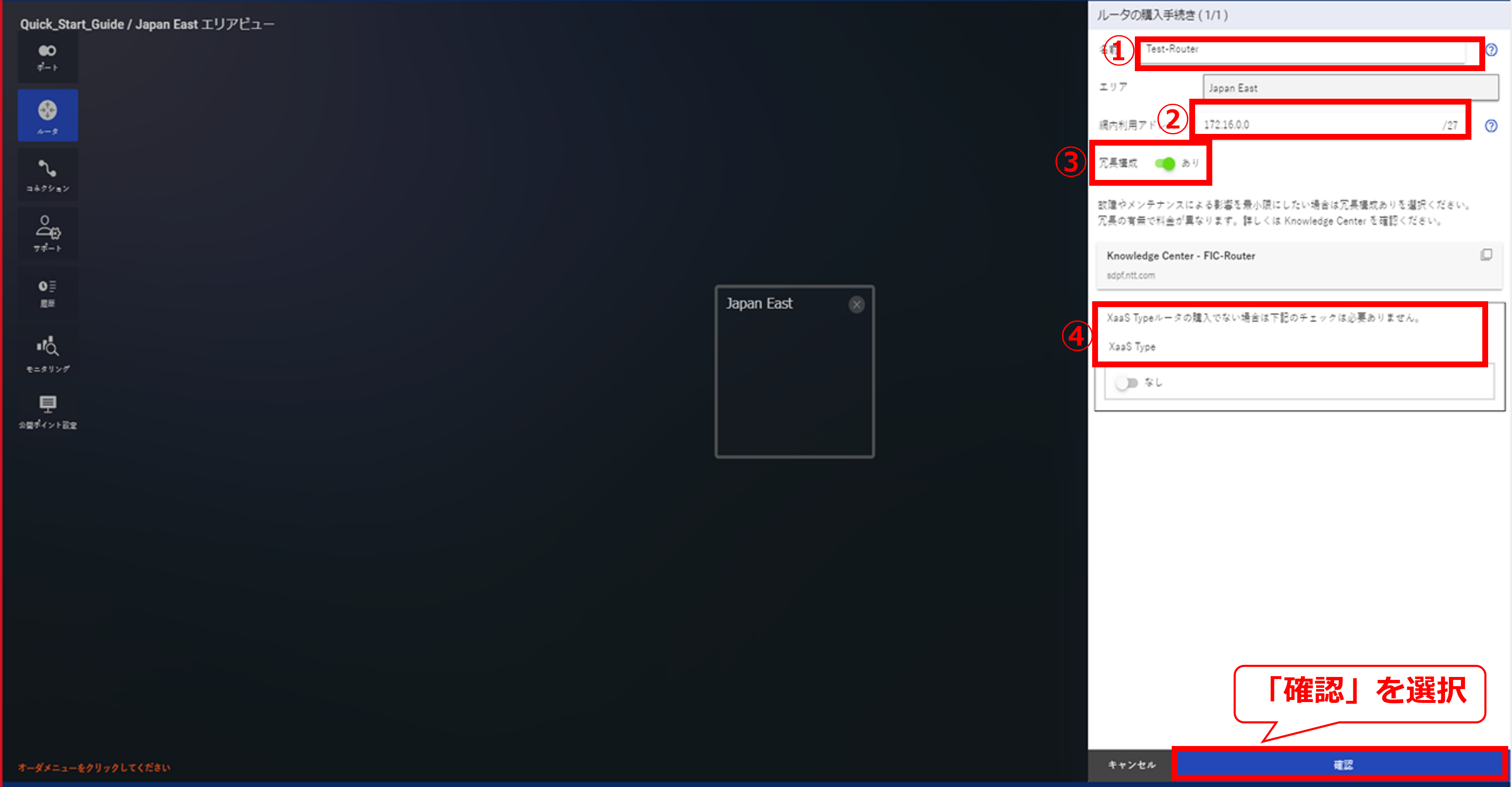 FICコンソールでFIC-Connection(Router-Port(XaaS))の作成 |