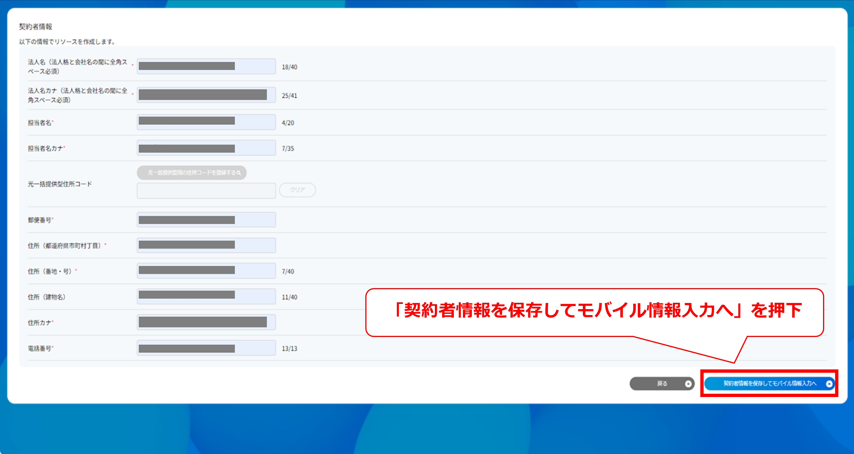 1.6.4 モバイル情報の入力画面(docomo business RINK セキュアドWAN)