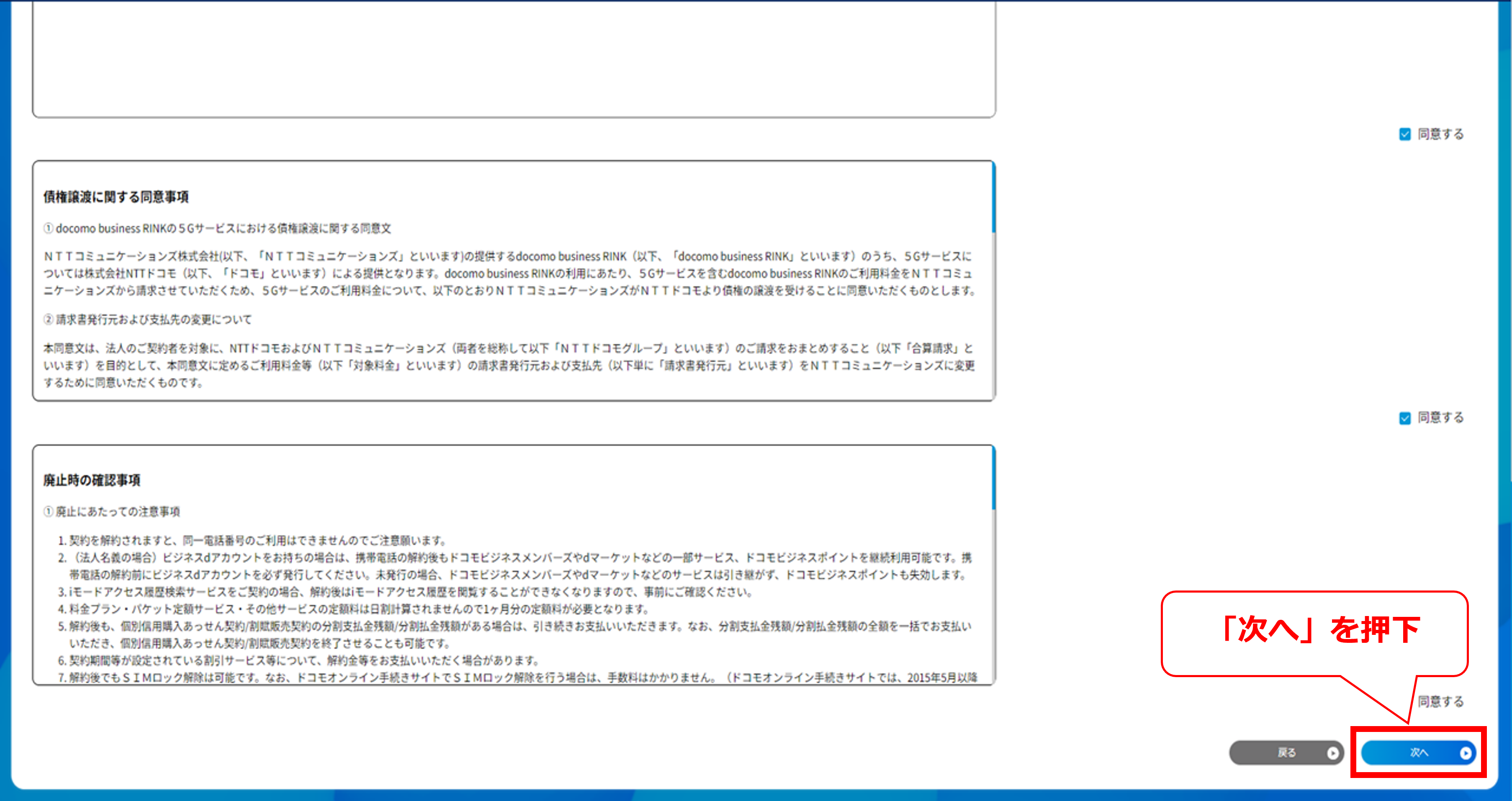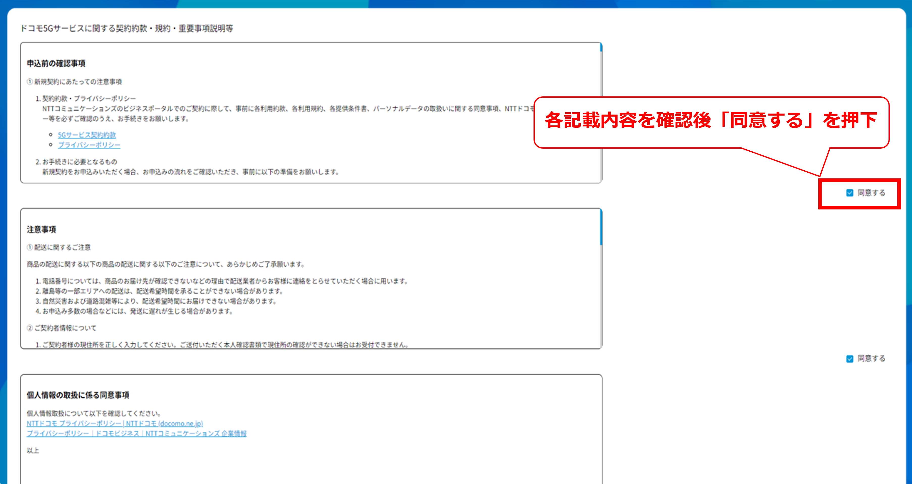 1.6.5 契約約款・規約・重要事項説明等記載画面①(docomo business RINK セキュアドWAN)