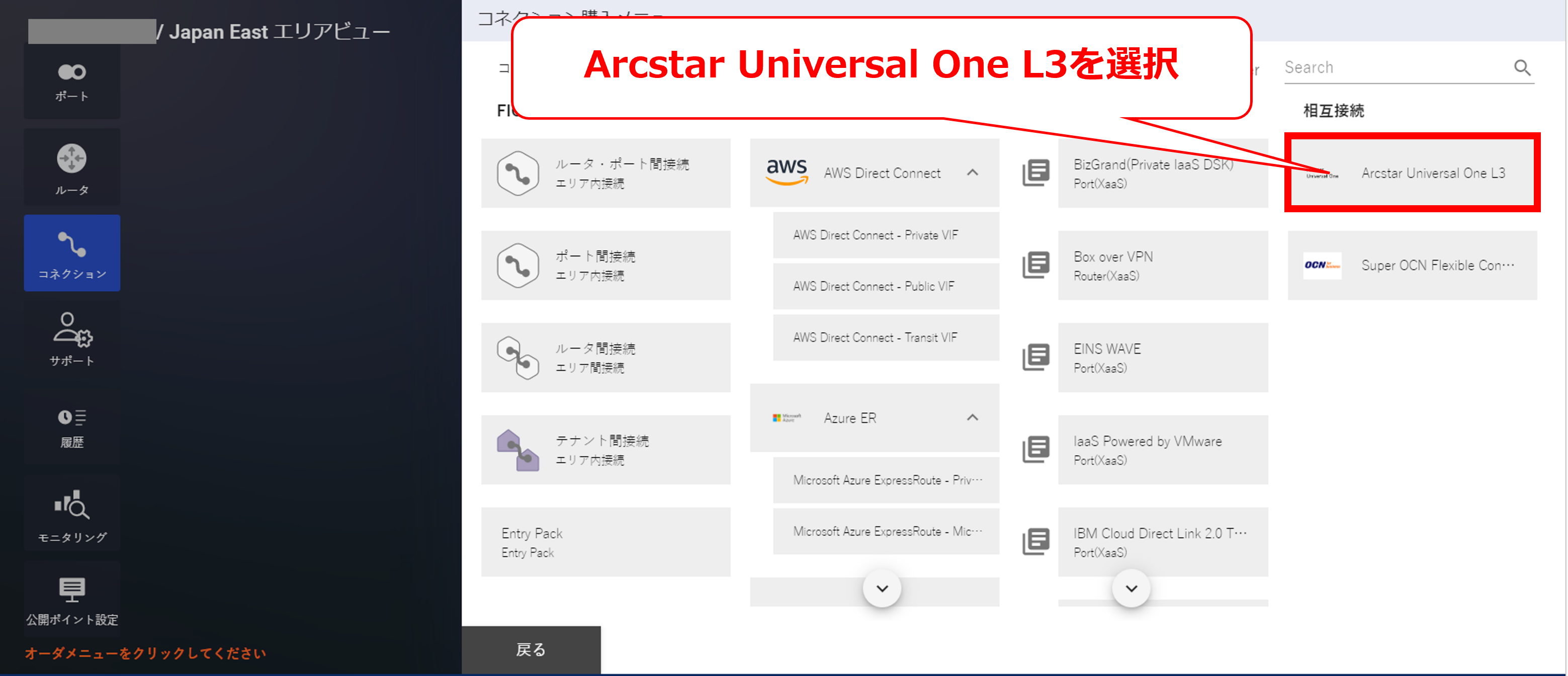 3.7.2 コネクション購入画面①(Arcstar Universal One)