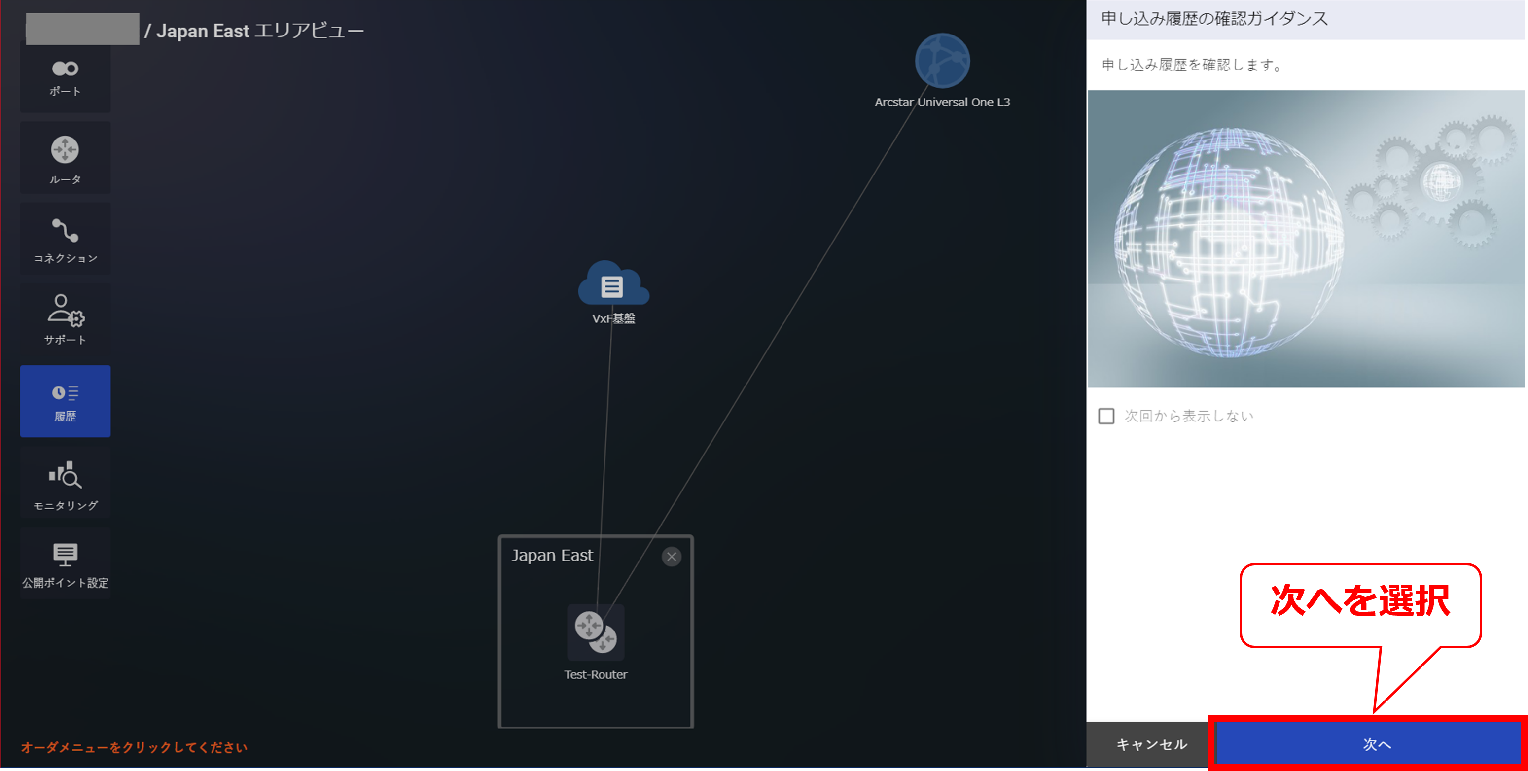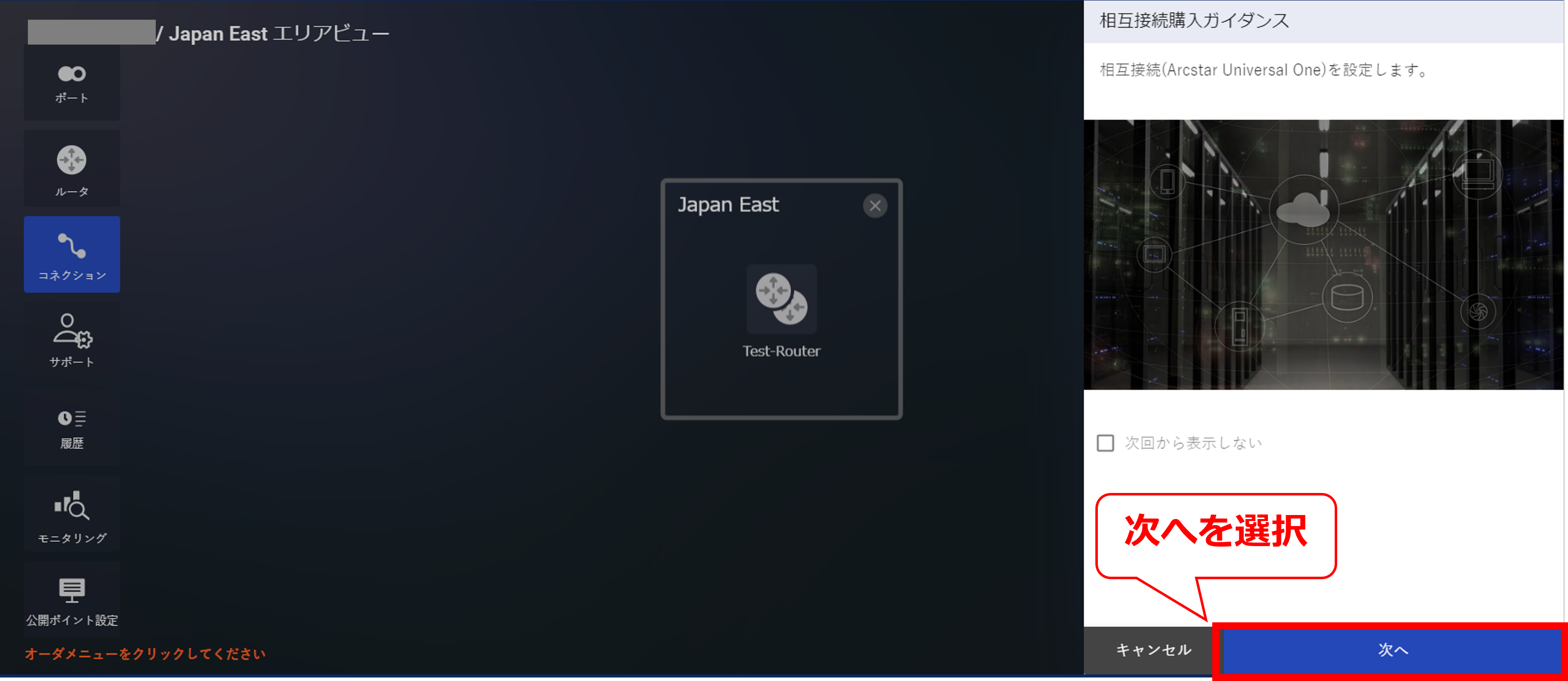 3.7.3 クラウド接続購入ガイダンス画面(Arcstar Universal One)