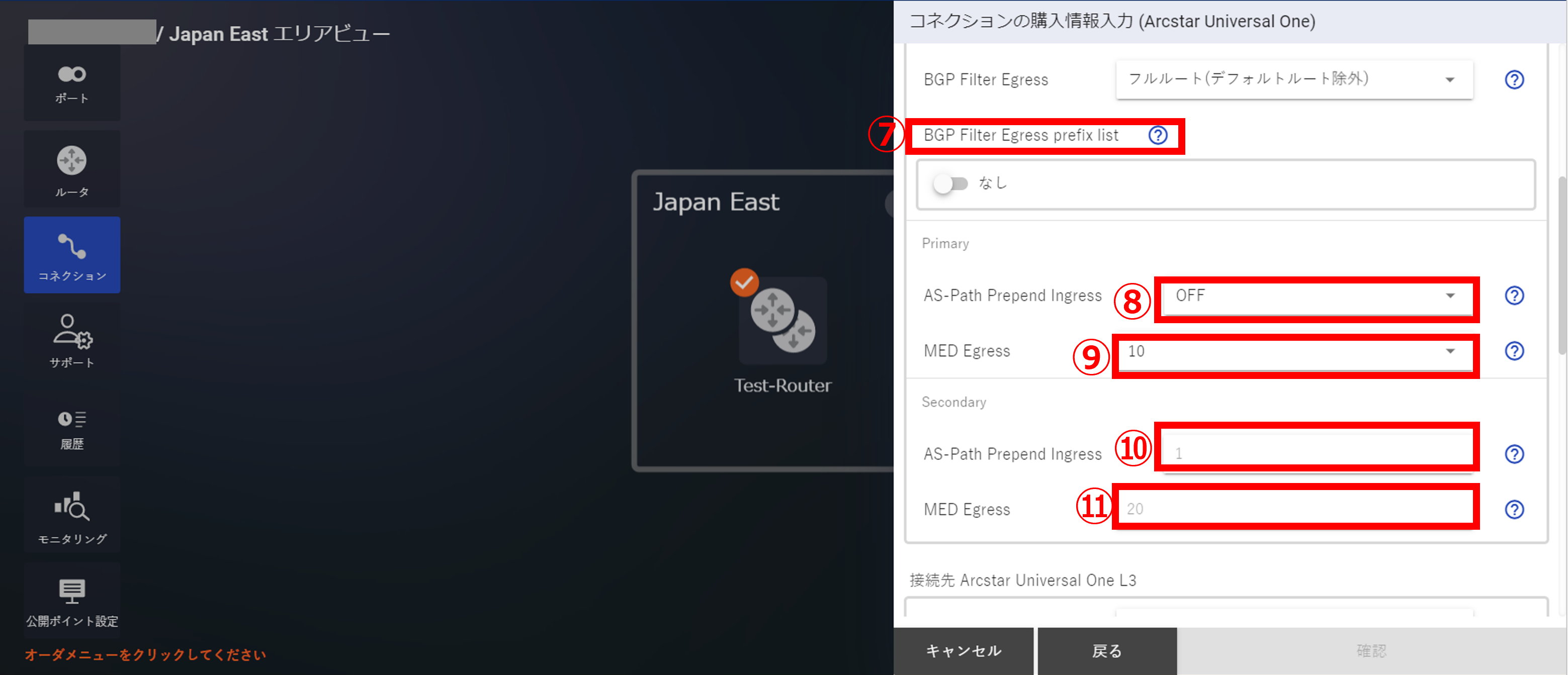 3.7.8 コネクションの購入情報入力画面④(Arcstar Universal One)