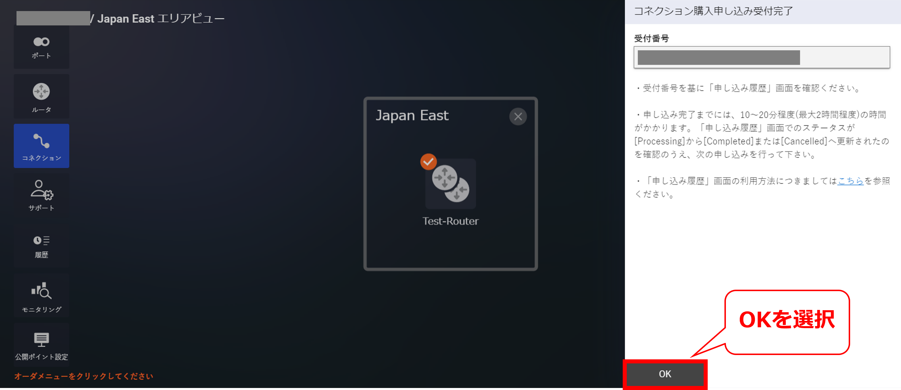 申し込みの完了日時が表示※UTC表示となる |