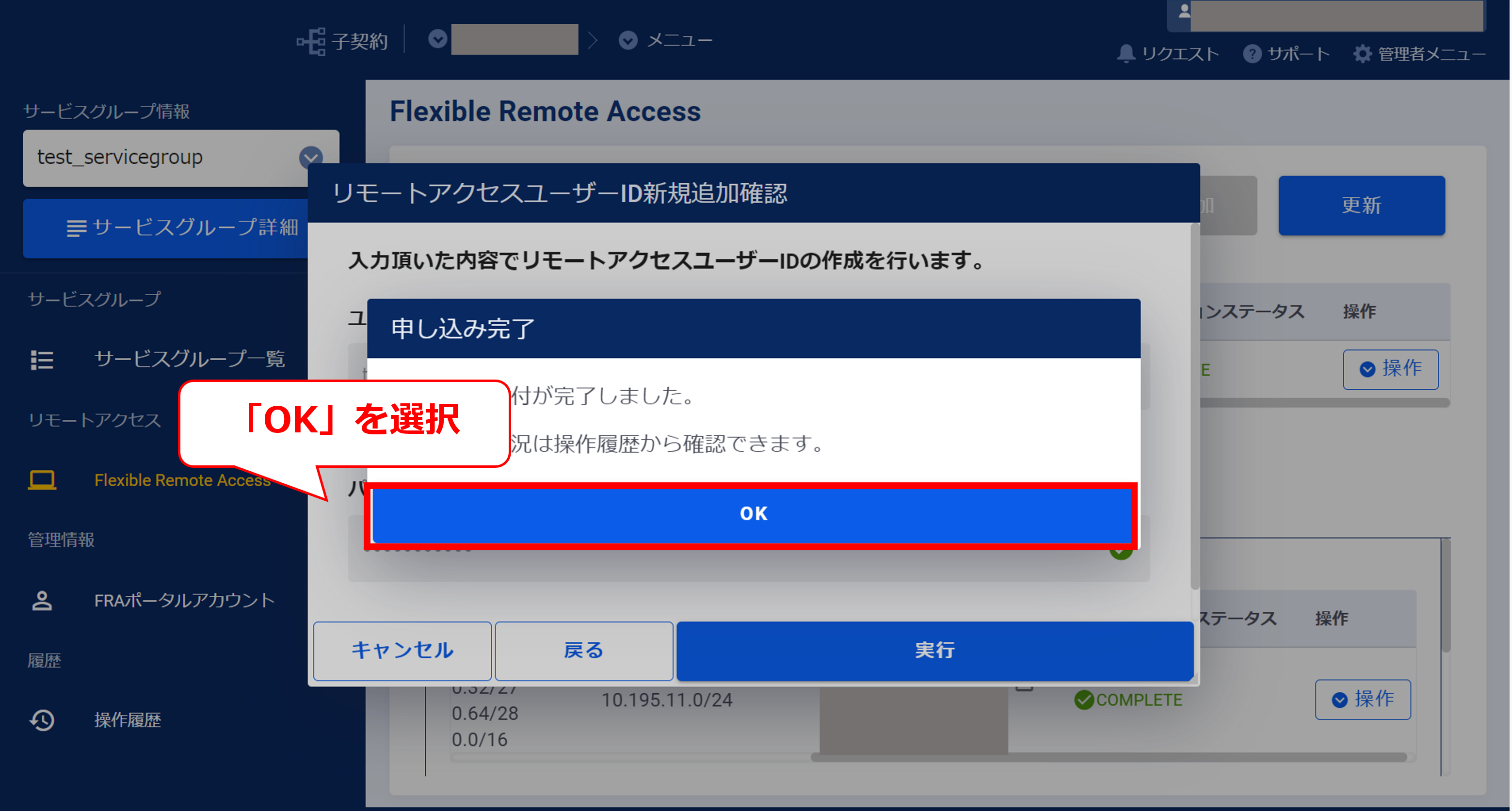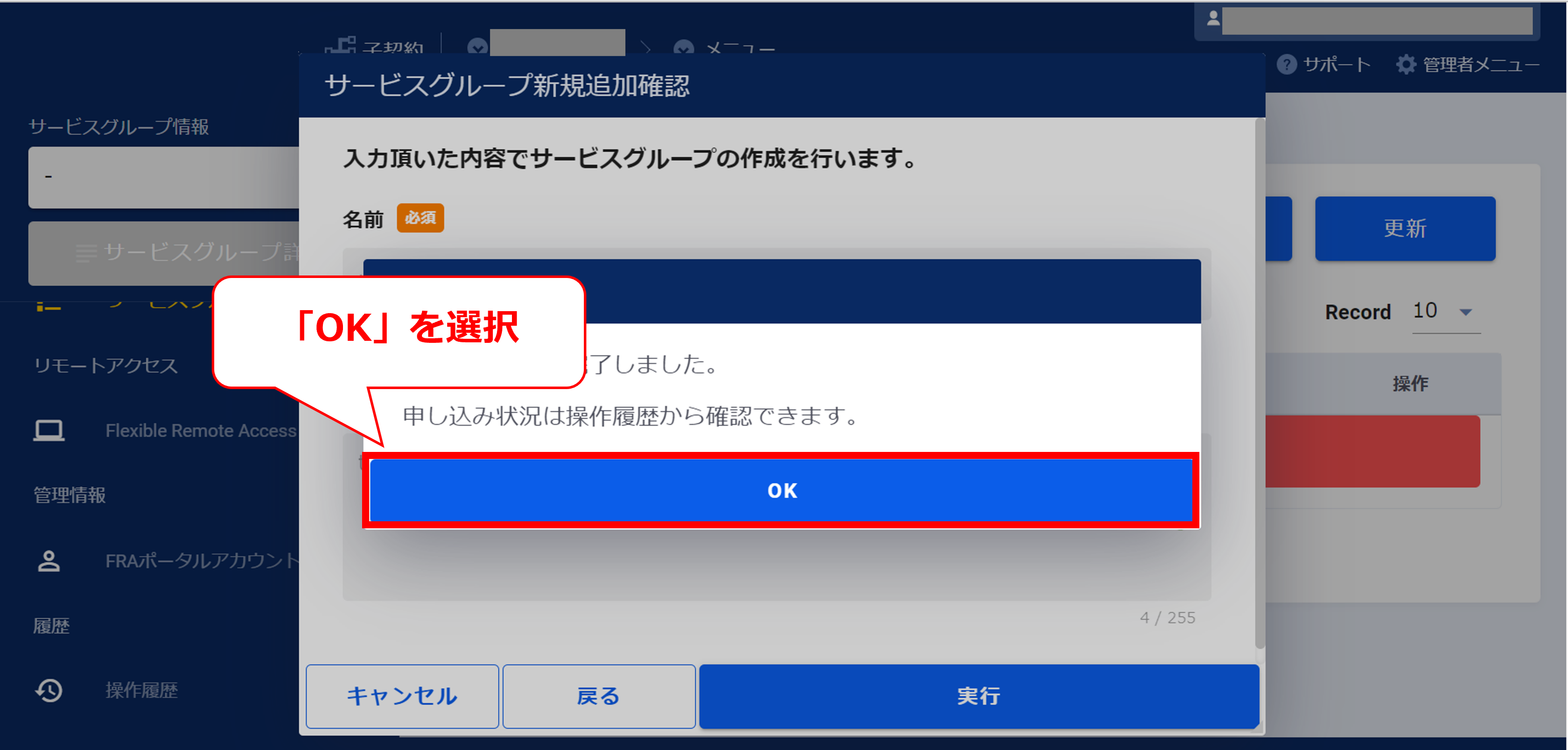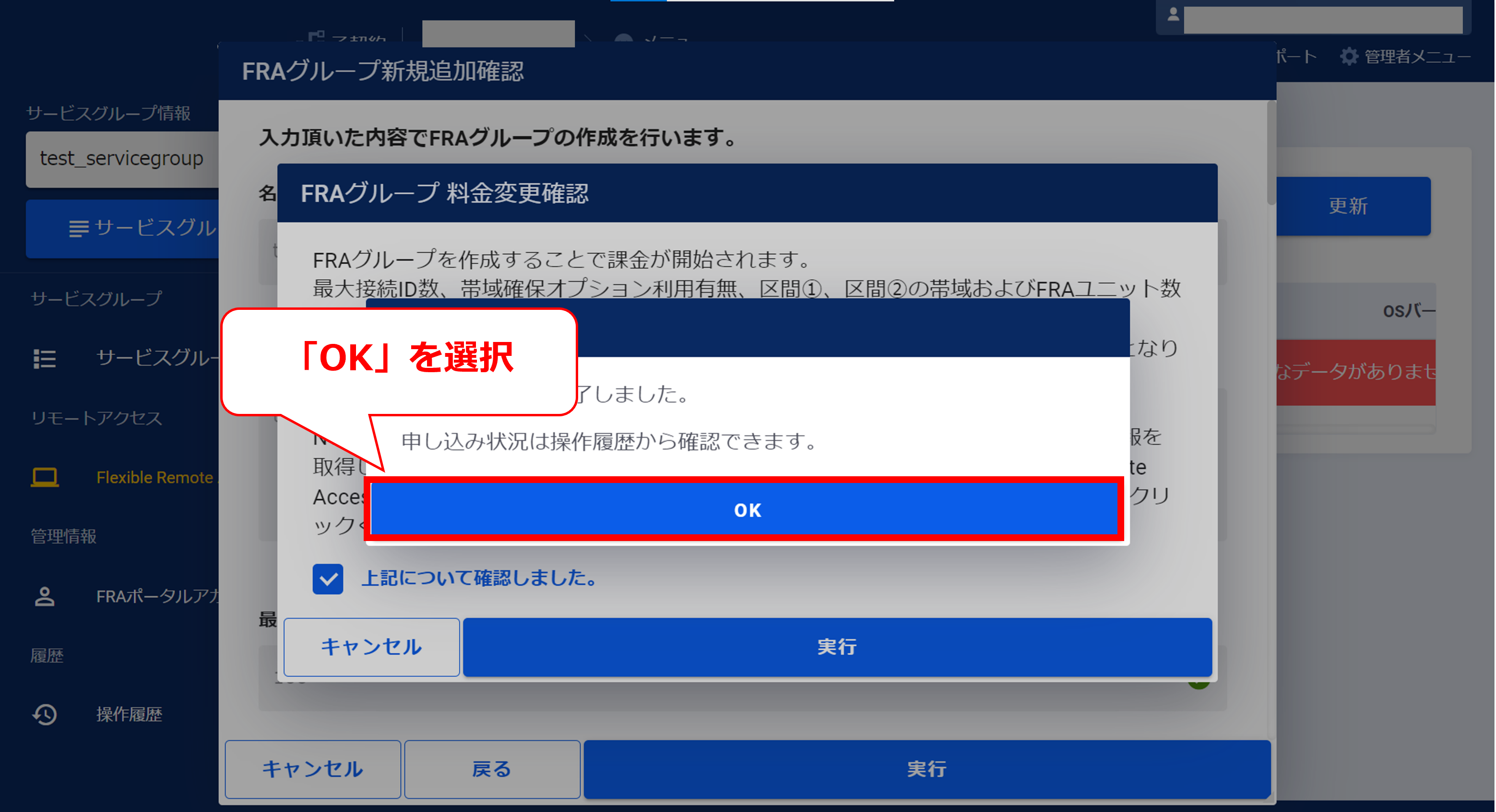 3.8.6 サービスグループの新規追加受け付け完了画面(FRA)