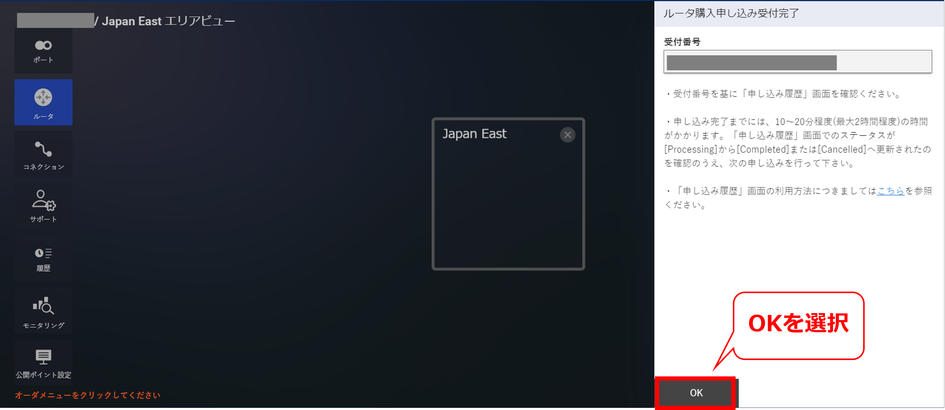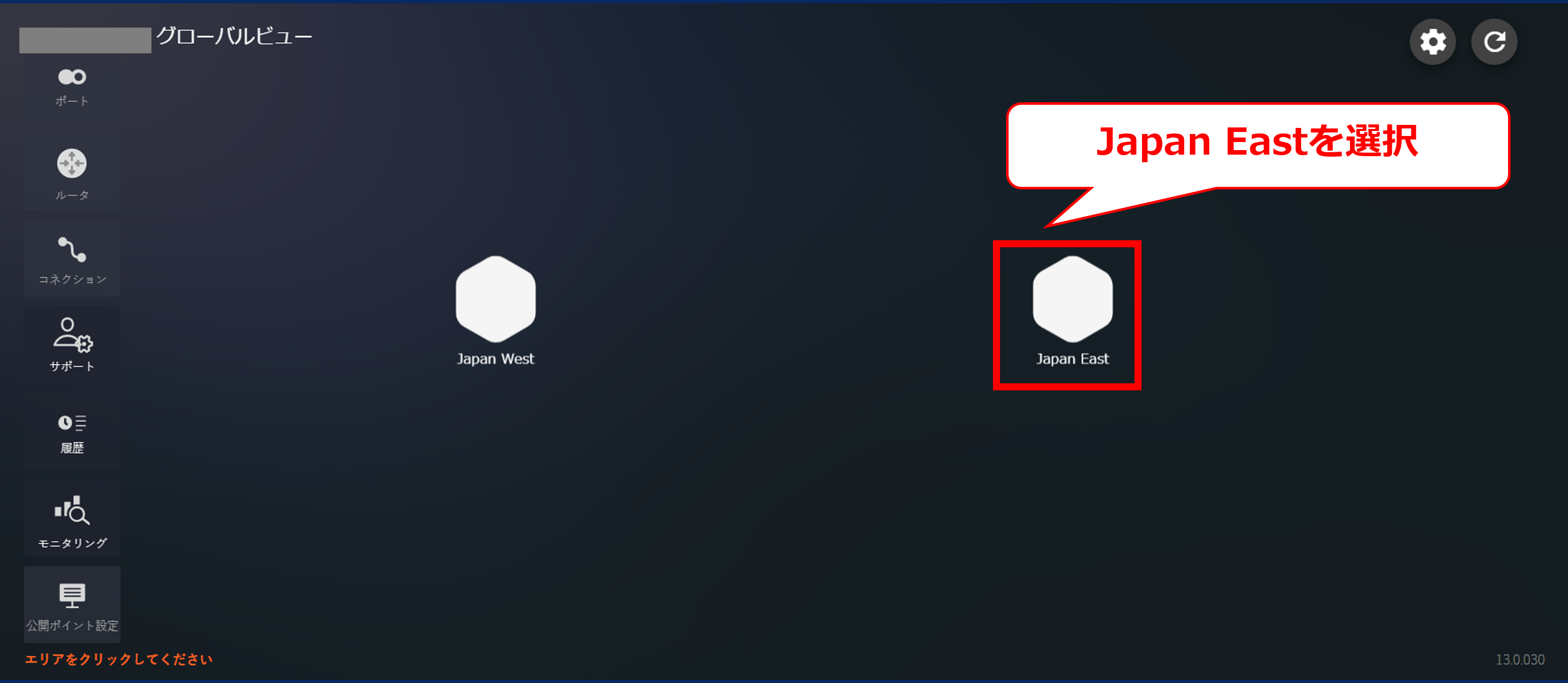 3.6.2 Japan Eastを選択後の画面