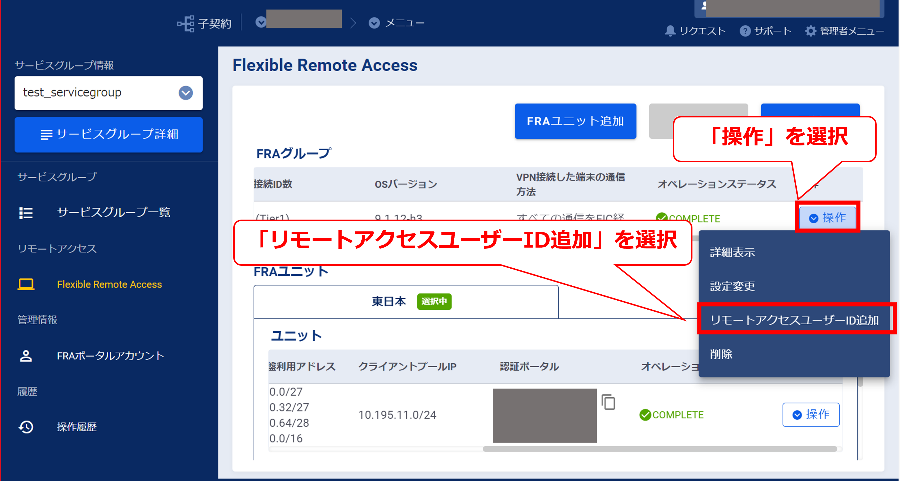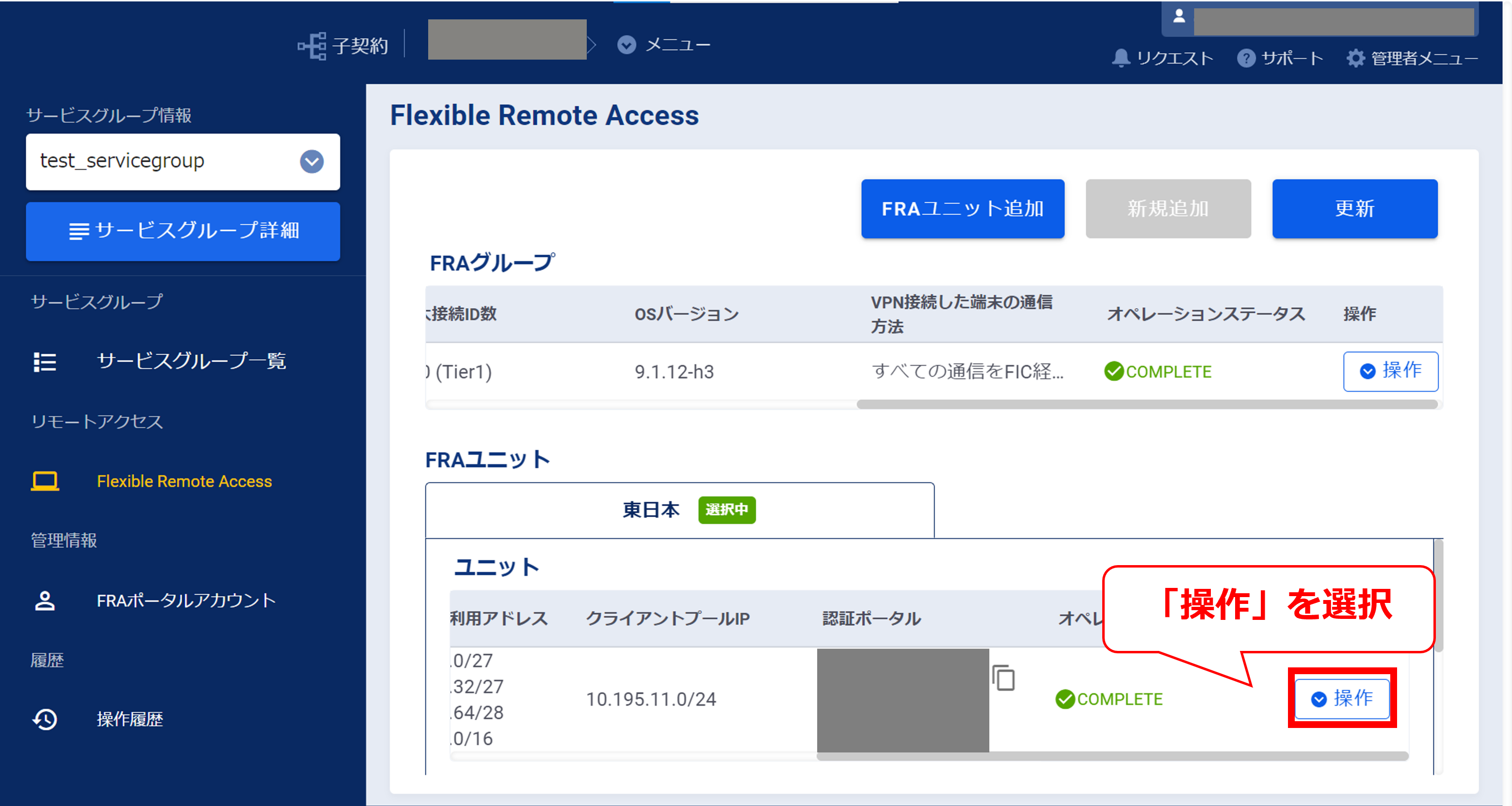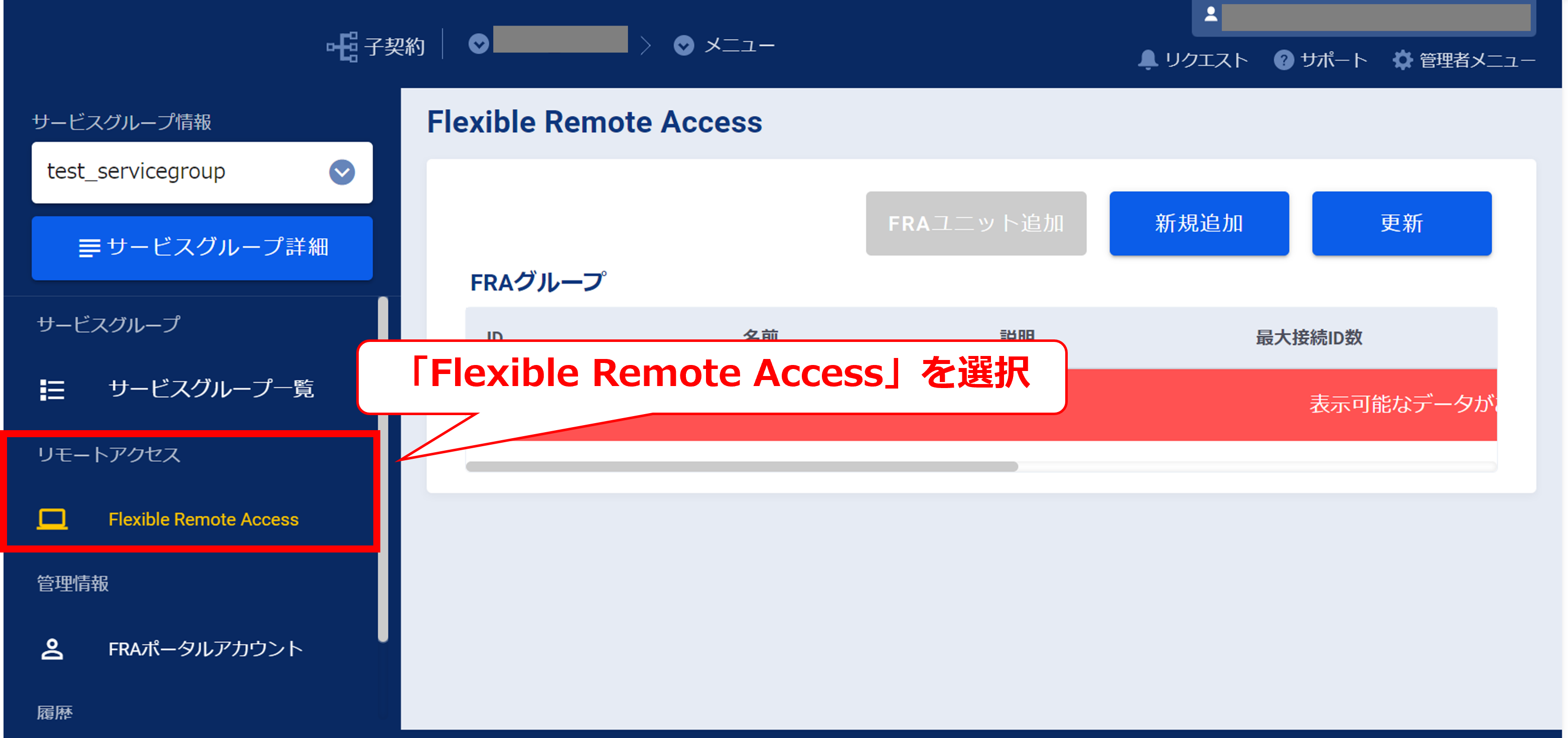 3.9.1「Flexible Remote Access」タブ選択後の画面(FRA)