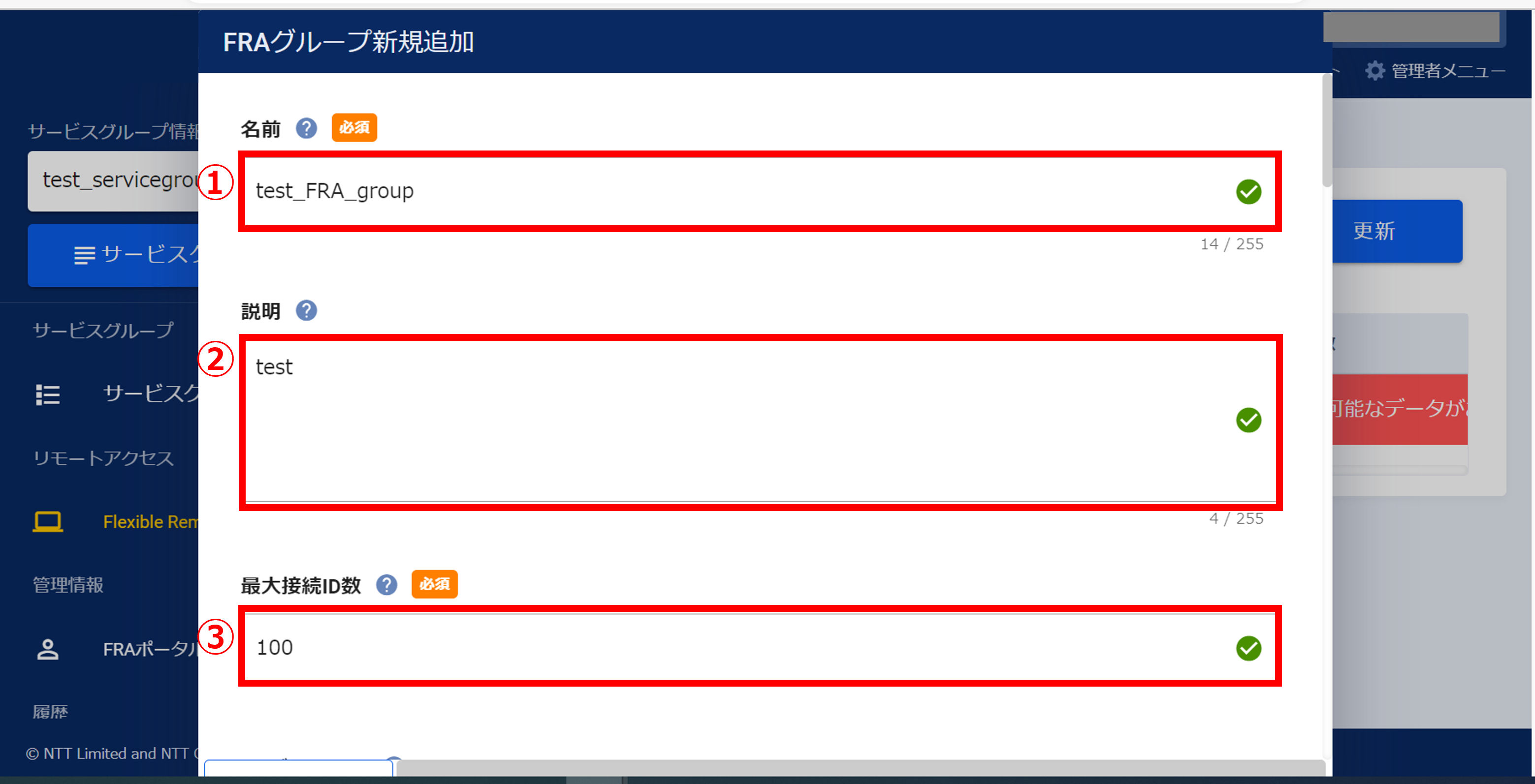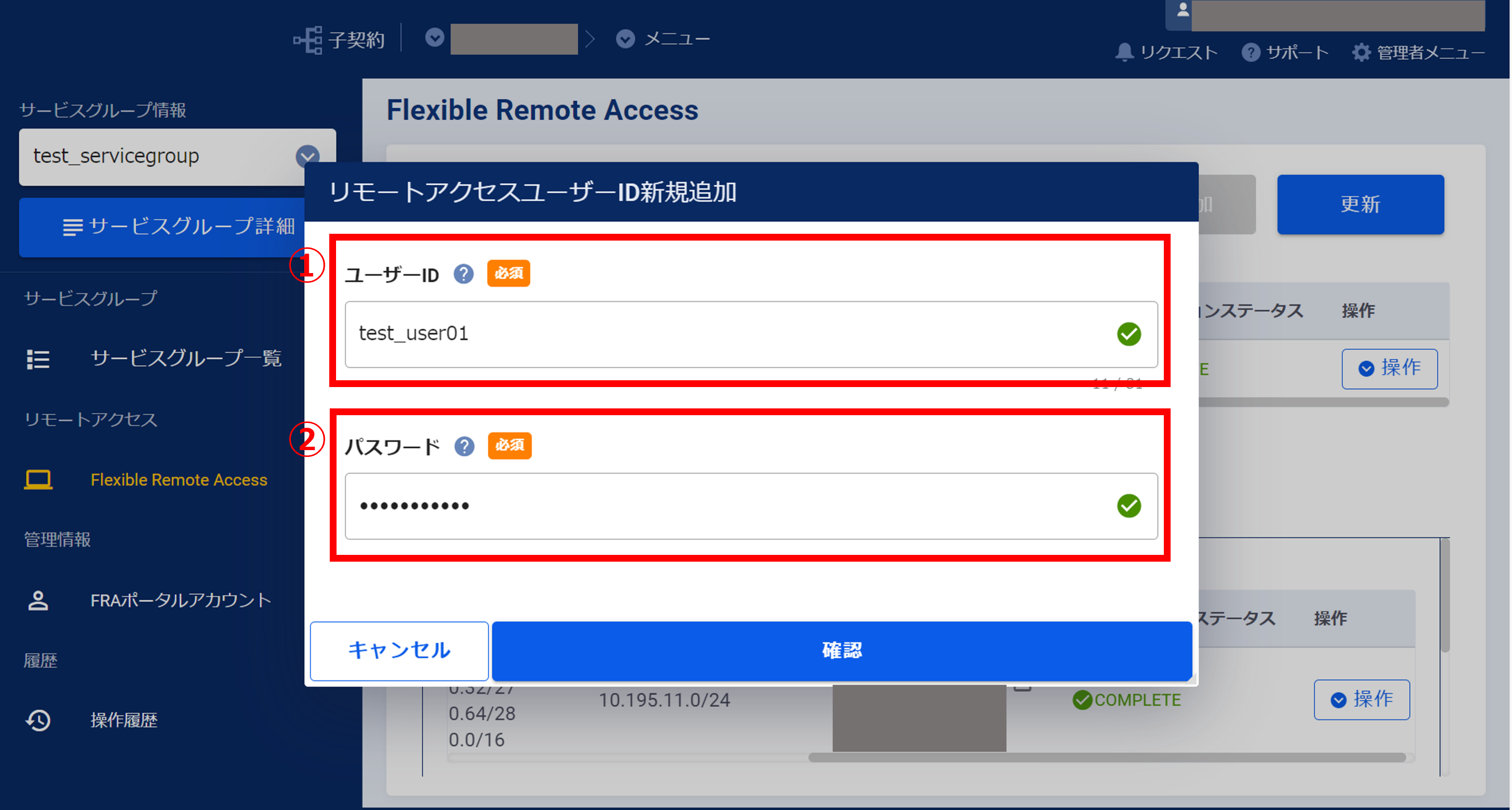 3.11.3 リモートアクセスユーザーの作成受け付け画面(FRA)